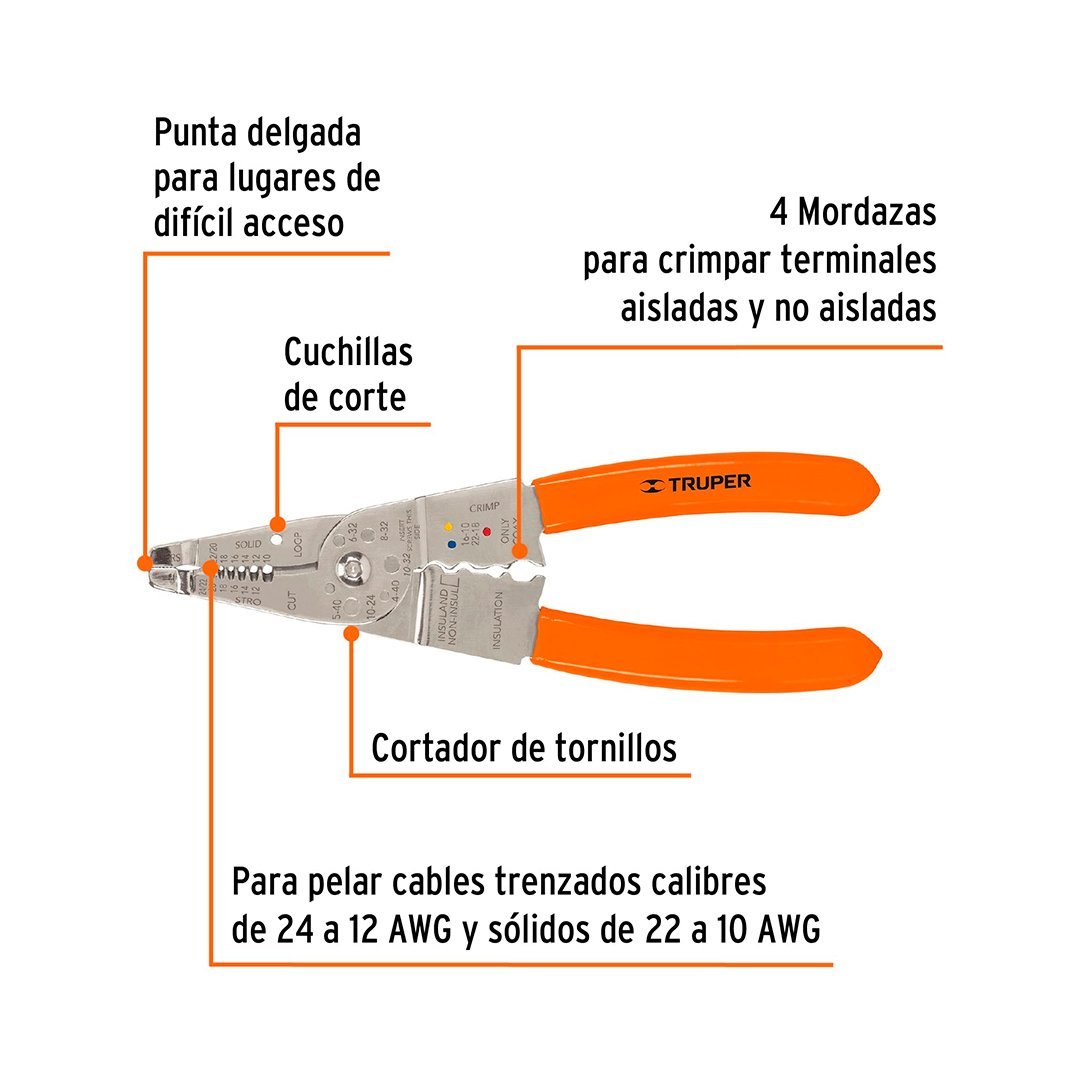 Alicate pelacables 8" 24 a 12 AWG TRUPER cantidad