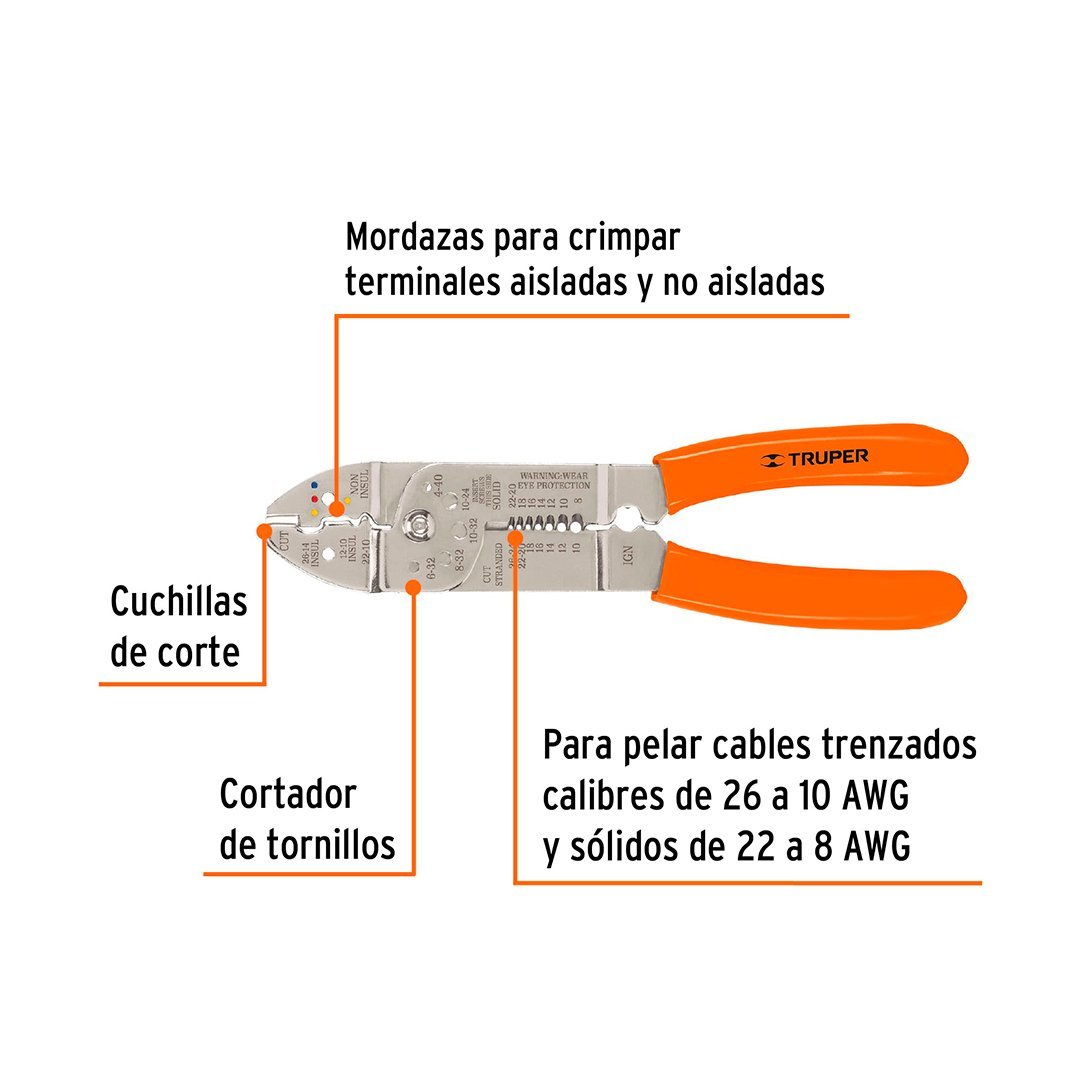 Alicate pelacables 9″ 26 a 10 AWG TRUPER