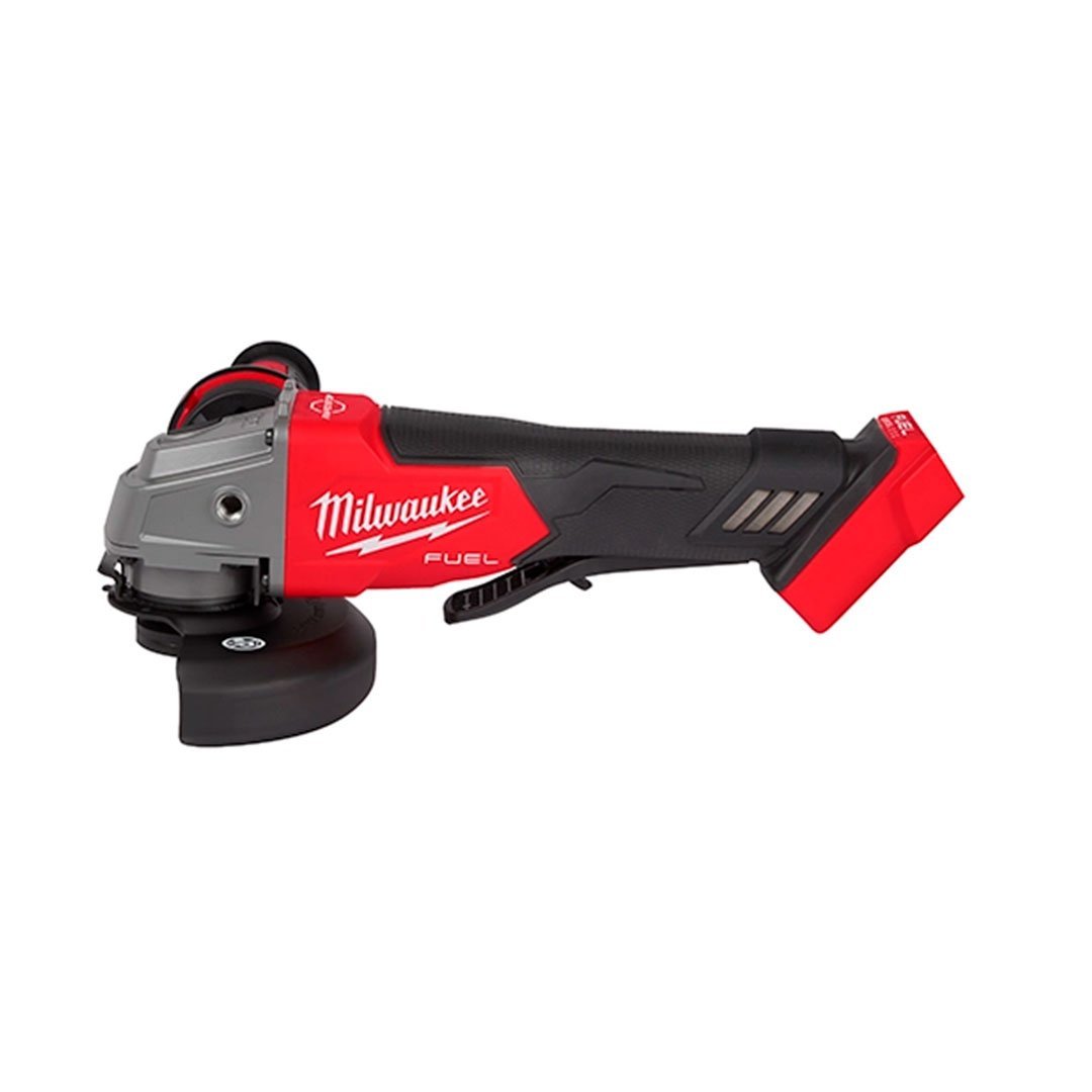 Nuestro kit de rectificadora con freno M18 FUEL™ de 4-1/2″ / 5″, con interruptor de paleta sin bloqueo es el siguiente avance en potencia y rendimiento, ya que genera 11 A de potencia alámbrica, cortes más rápidos y ofrece hasta 135 cortes por carga. La rectificadora con freno M18 FUEL™ de 4-1/2″ / 5″ genera 11 A de potencia alámbrica, lo que le permite completar las aplicaciones de corte y rectificado más difíciles, todo con el sistema inalámbrico M18™. El motor sin escobillas POWERSTATE™ ofrece la máxima energía constante y 8,500 RPM para retirar material más rápido y aumentar la productividad. La Inteligencia REDLINK PLUS™ garantiza niveles inigualables de rendimiento, protección y compatibilidad. La rectificadora con freno M18 FUEL™ de 4-1/2″ / 5″ incluye un embrague electrónico para la protección antirrebote, además de protección contra sobrecarga para maximizar la vida útil del motor. Las baterías M18™ REDLITHIUM™ HIGH OUTPUT™ XC6.0 ofrecen un 50 % más de potencia mientras funcionan 50 % más frías que nuestras baterías M18™ REDLITHIUM™ XC y son compatibles con más de 200 herramientas en el sistema M18™. Con accesorios sin herramientas y ajustes de protección, experimentará cambios de accesorios más rápidos y menos tiempo de inactividad, mientras sigue siendo completamente compatible con los accesorios más comunes en el mercado. La rectificadora con freno M18 FUEL™ 4-1/2″ / 5″ de MILWAUKEE® lleva las rectificadoras inalámbricas al siguiente nivel en rendimiento y tiempo de operación.