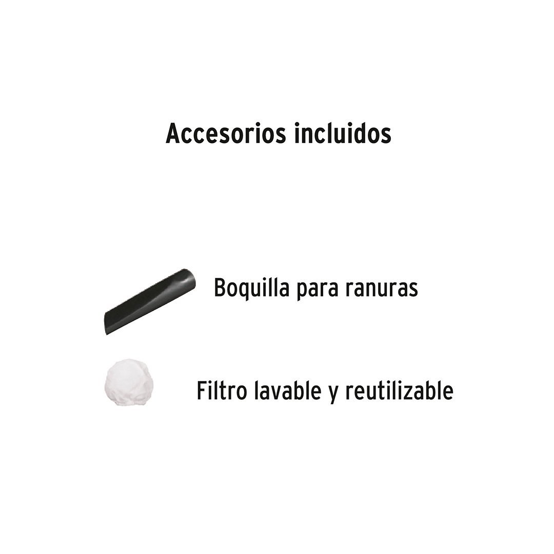 Incluye Boquilla para ranuras, filtro lavable y reutilizable