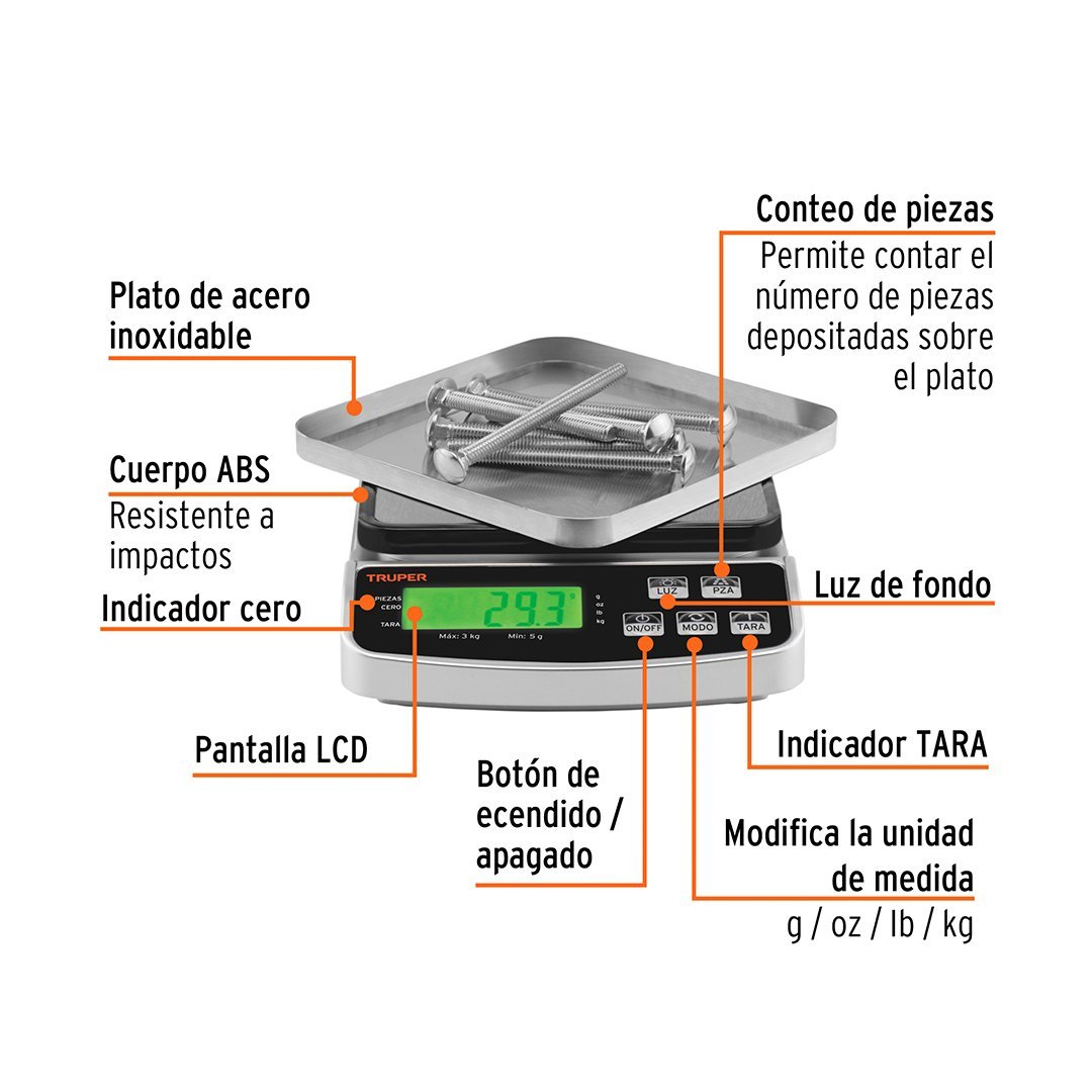 Balanza electrónica de precisión 3 kg TRUPER cantidad