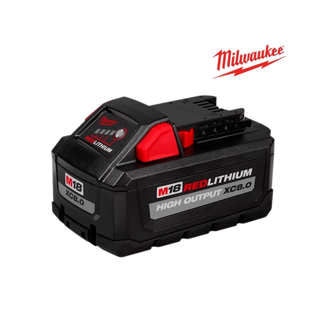 La batería M18™ REDLITHIUM™ HIGH OUTPUT™ XC8.0 brinda un 50 % más de potencia y funciona 50 % más fría que las baterías M18™ REDLITHIUM™ XC. La combinación optimizada de tamaño más pequeño y mayor potencia de la batería de 18 voltios ofrece una solución ideal para toda la gama de productos M18™. La batería de iones de litio ofrece potencia uniforme y funciona considerablemente más fría en aplicaciones difíciles, lo que le permite usar herramientas eléctricas en una amplia gama de aplicaciones. La batería M18™ XC8.0 ofrece mayor potencia en condiciones de frío extremo (bajo 0 °F / -18 °C) y ofrece más trabajo por carga, lo que permite reemplazar las herramientas alámbricas. La batería de capacidad extendida REDLITHIUM™ HIGH OUTPUT™ XC8.0 es completamente compatible con todas las soluciones M18™ de Milwaukee®.