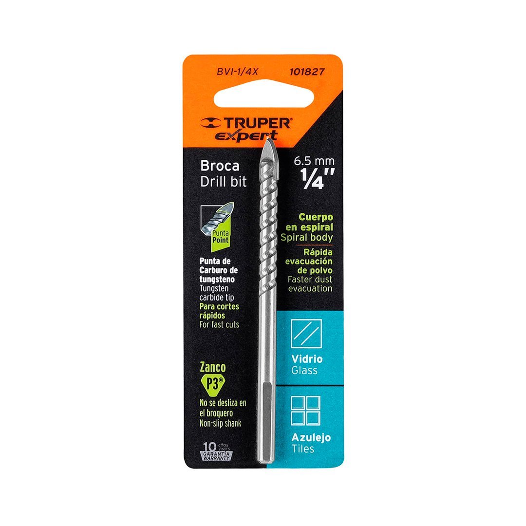 Broca para vidrio y mayólica 1/4″ cuerpo de espiral TRUPER