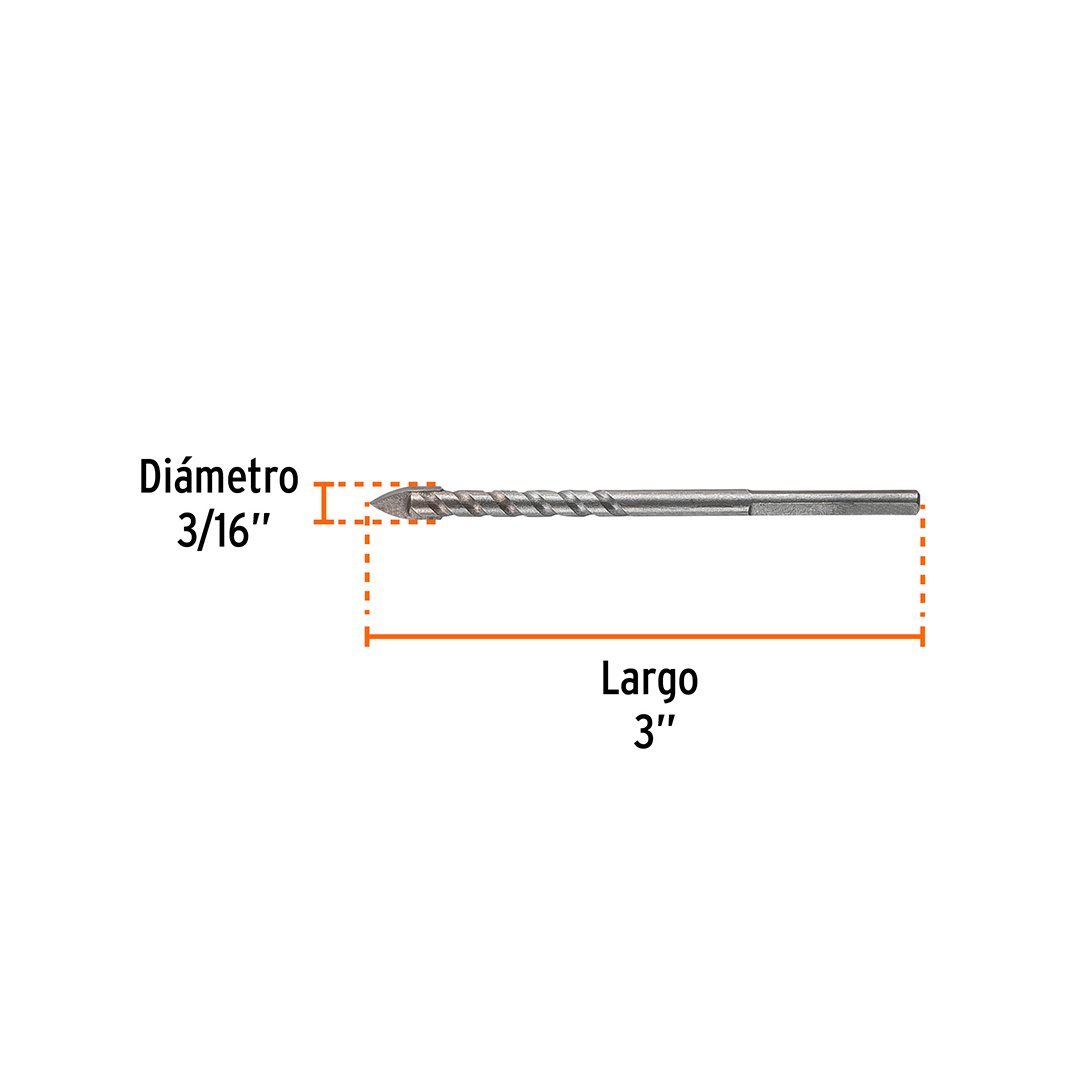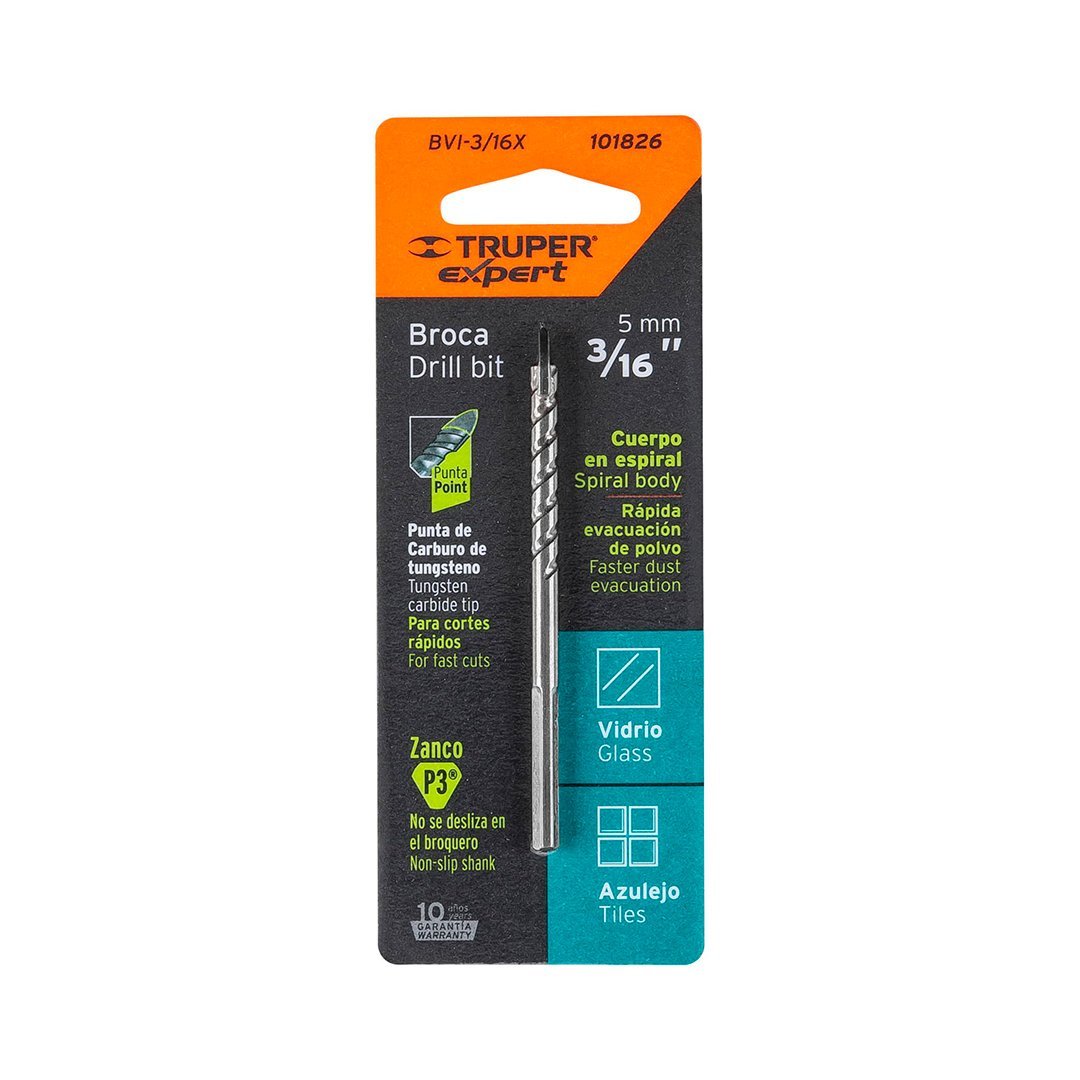 Broca para vidrio y mayólica 3/16" cuerpo de espiral TRUPER cantidad