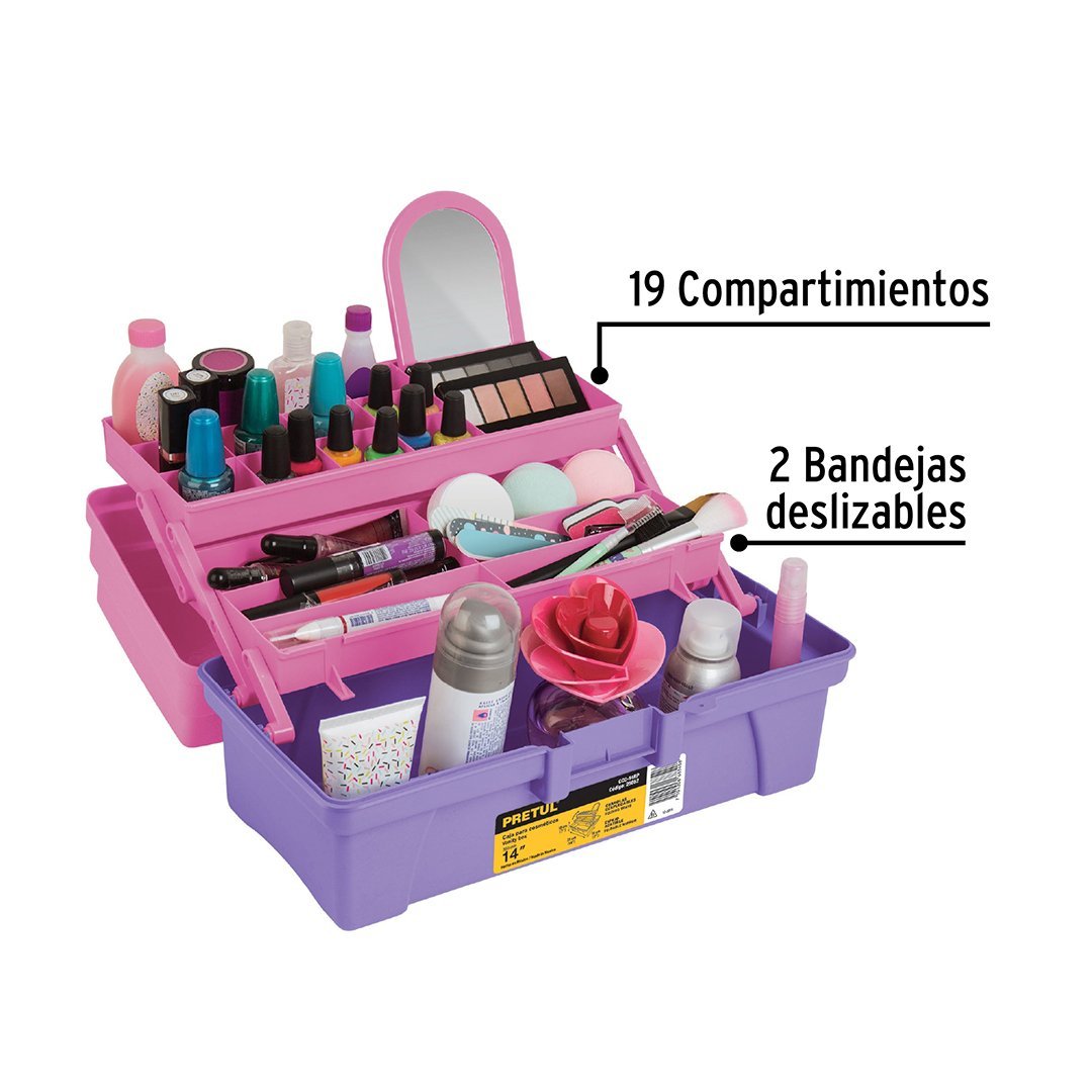 Caja cosmetiquera 14" rosa/morado TRUPER cantidad