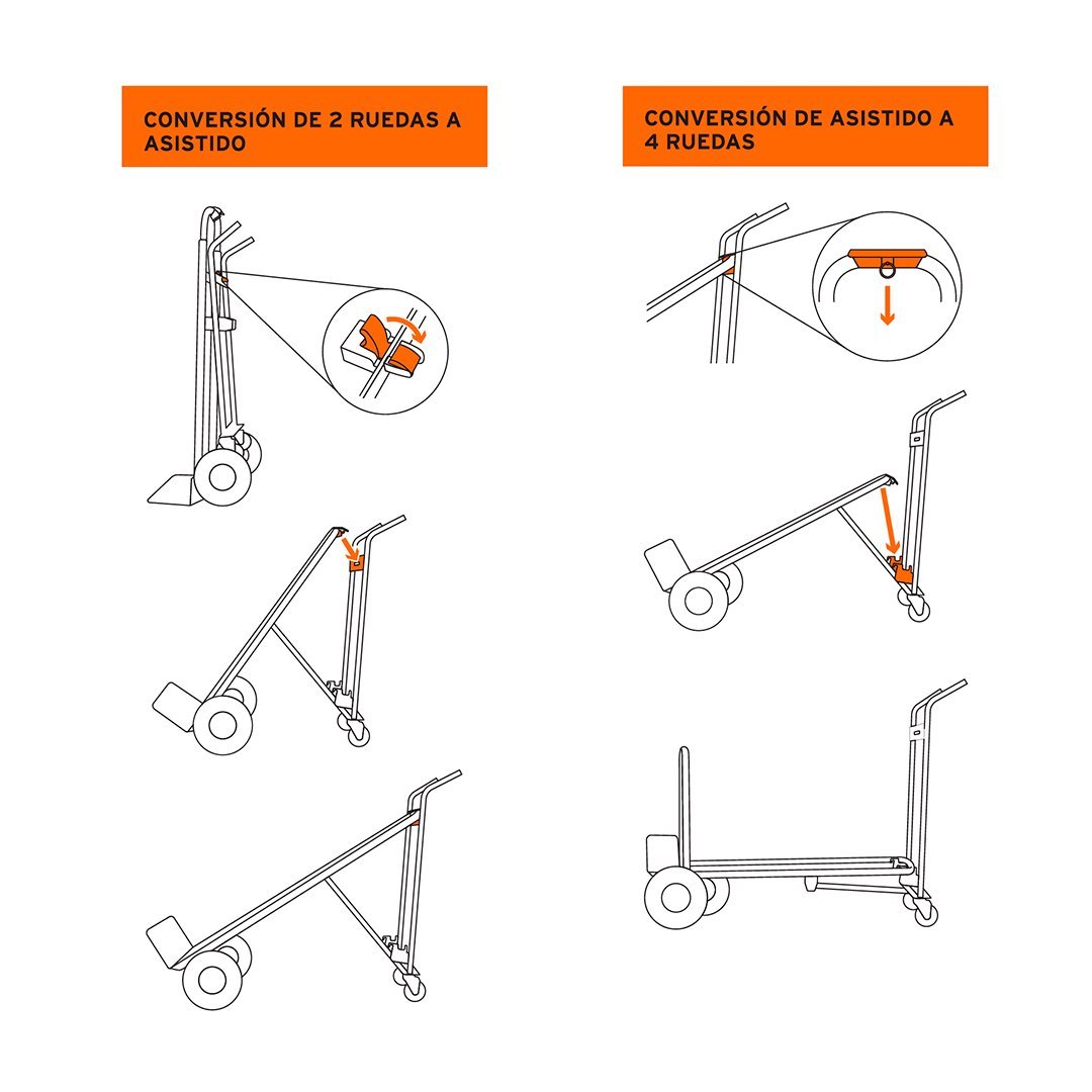 3 en 1 Fácil conversión, 2 ruedas, 4 ruedas y asistido