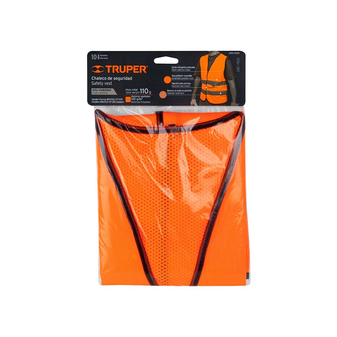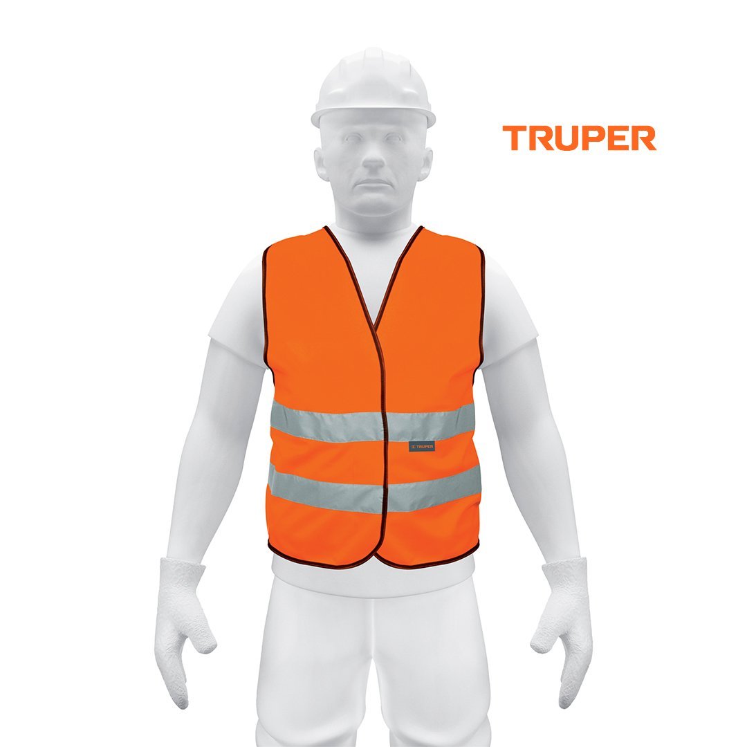 Chaleco de seguridad naranja con cintas de alta visibilidad TRUPER cantidad