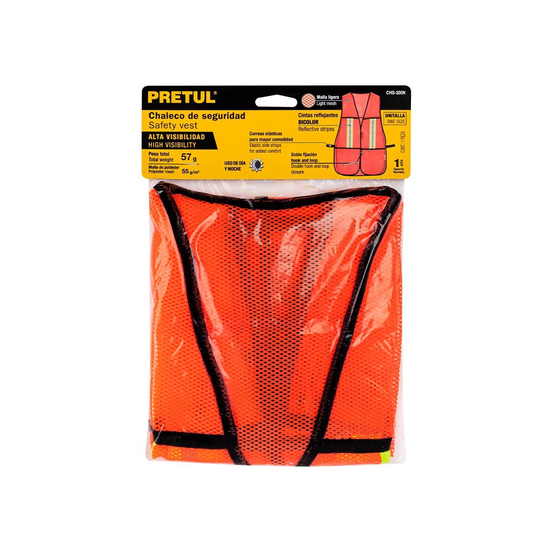 Chaleco de seguridad naranja con cintas reflejantes PRETUL
