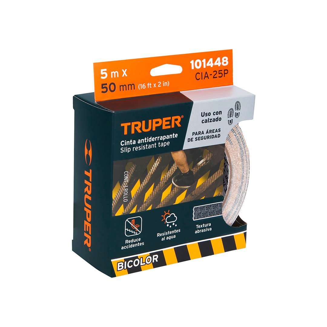 Cinta antideslizante bicolor con abrasivo 5m TRUPER cantidad