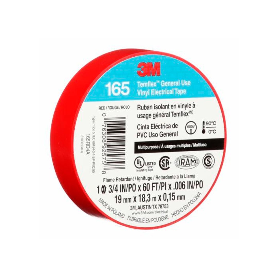 La Cinta Eléctrica de PVC 3M™ Temflex™ 165 es una cinta aislante de vinilo multiuso de buena calidad. Tiene gran resistencia a la humedad y a las condiciones climáticas variables.