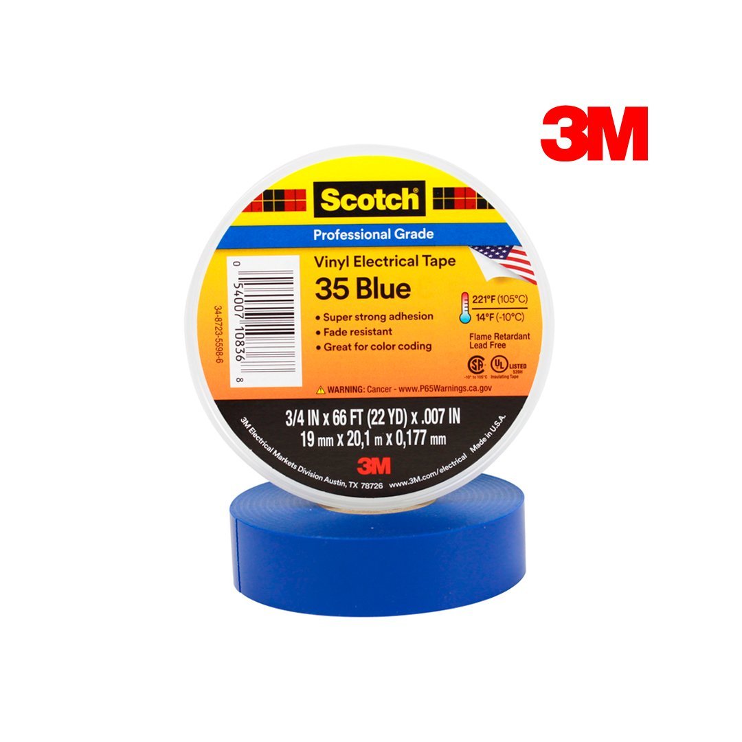 Cinta Eléctrica de Vinilo Scotch® 35 Azul 19 mm x 20 mts 3M cantidad