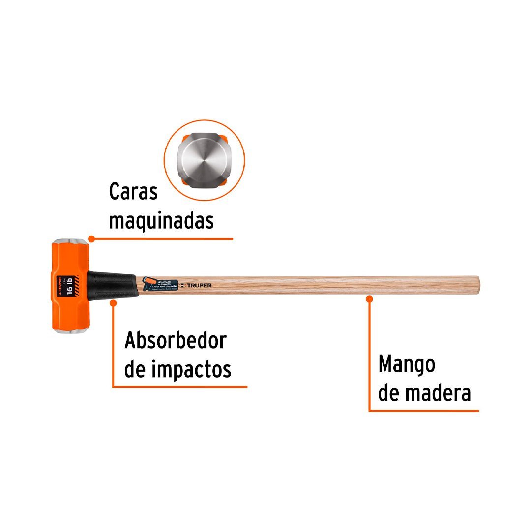 Comba octogonal 16 lb mango de madera 36" TRUPER cantidad