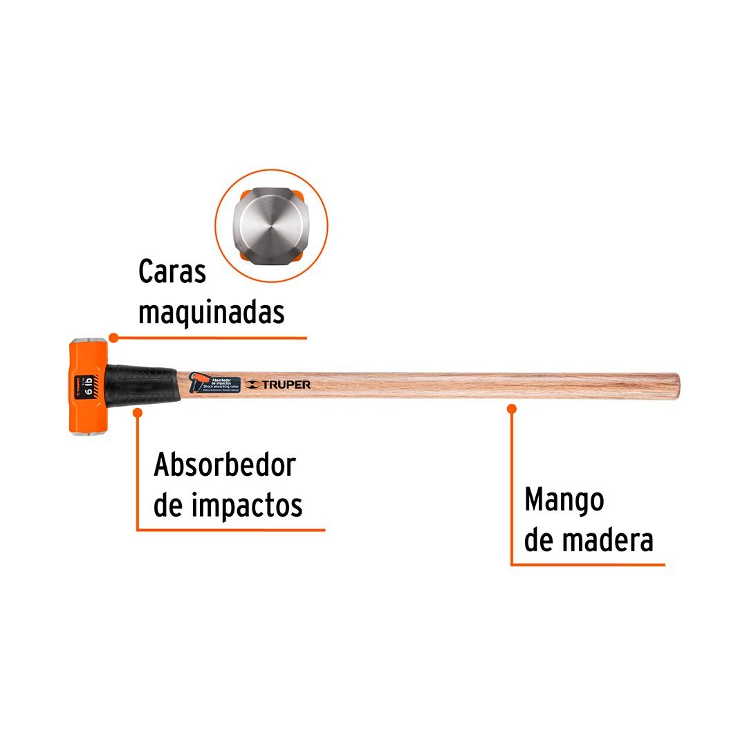 Comba octogonal 6 lb mango de madera 36" TRUPER cantidad