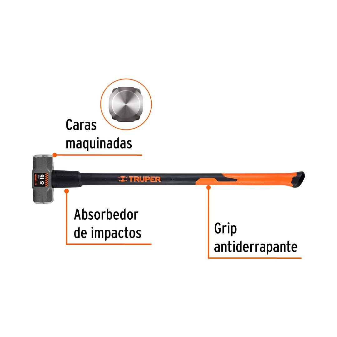 Comba octogonal 8 lb mango fibra de vidrio 36" TRUPER cantidad