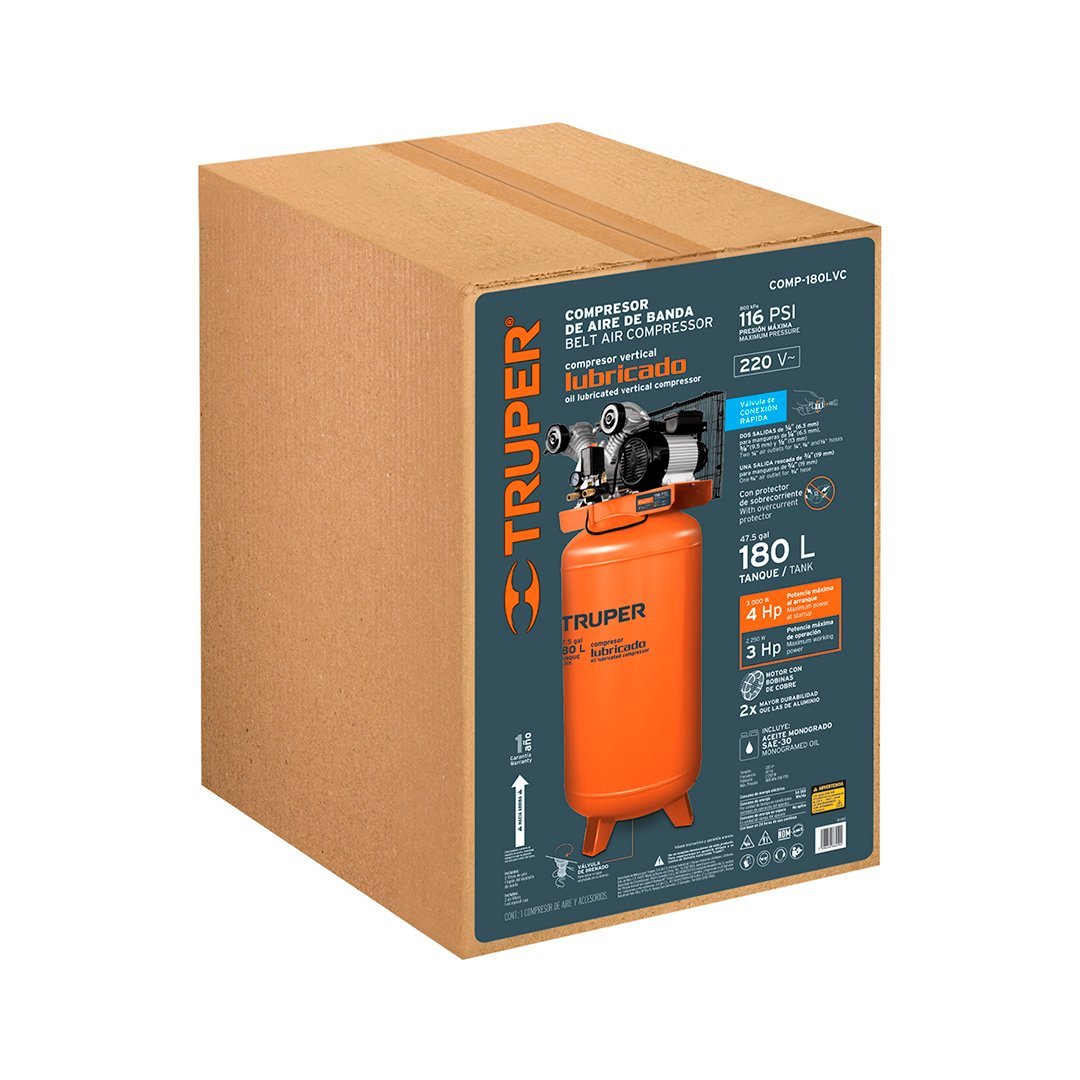 Compresora de aire 180 L lubricada de banda vertical TRUPER