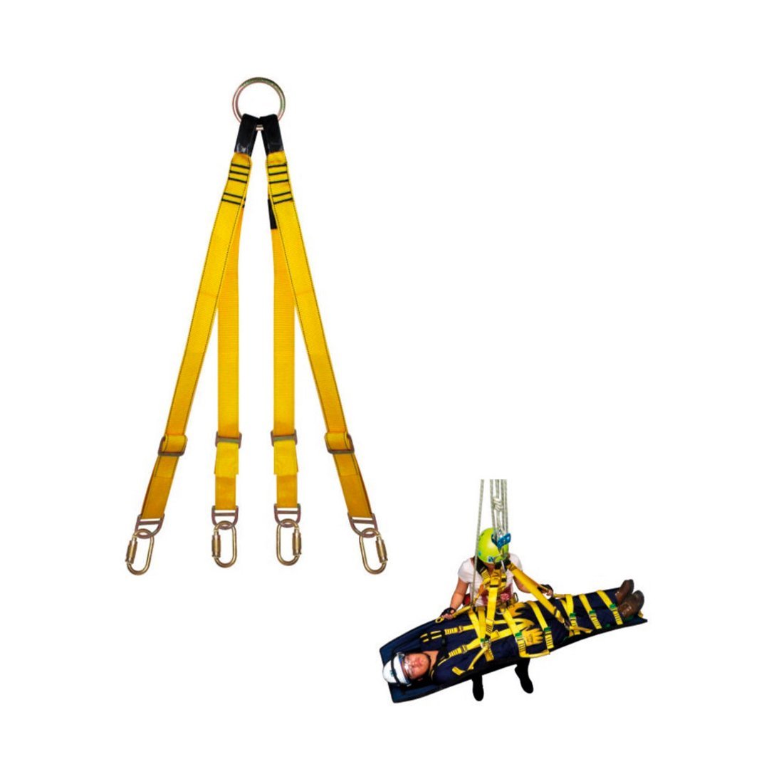 El conector de anclaje de 4 puntos,en conjunto con la camilla permiten transportar al herido en todo tipo de terrenos accidentados o estrechos.