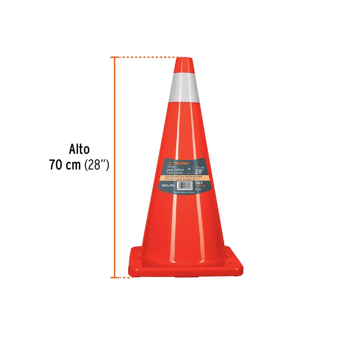 Cono de seguridad de PVC de 70 cm con reflectivos TRUPER cantidad