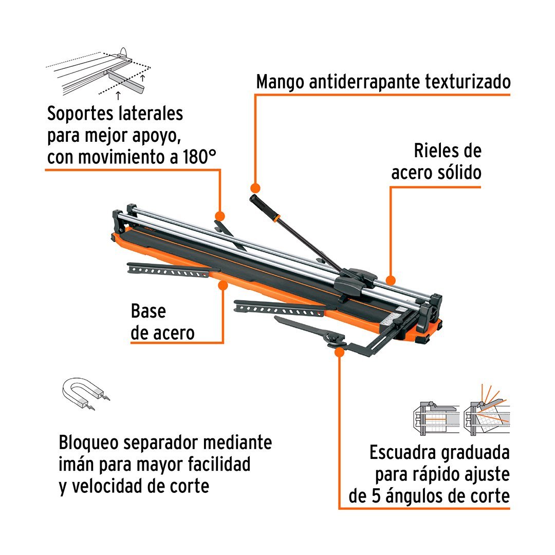 • Base de acero con almohadillas antiderrapantes y rieles de acero sólido
