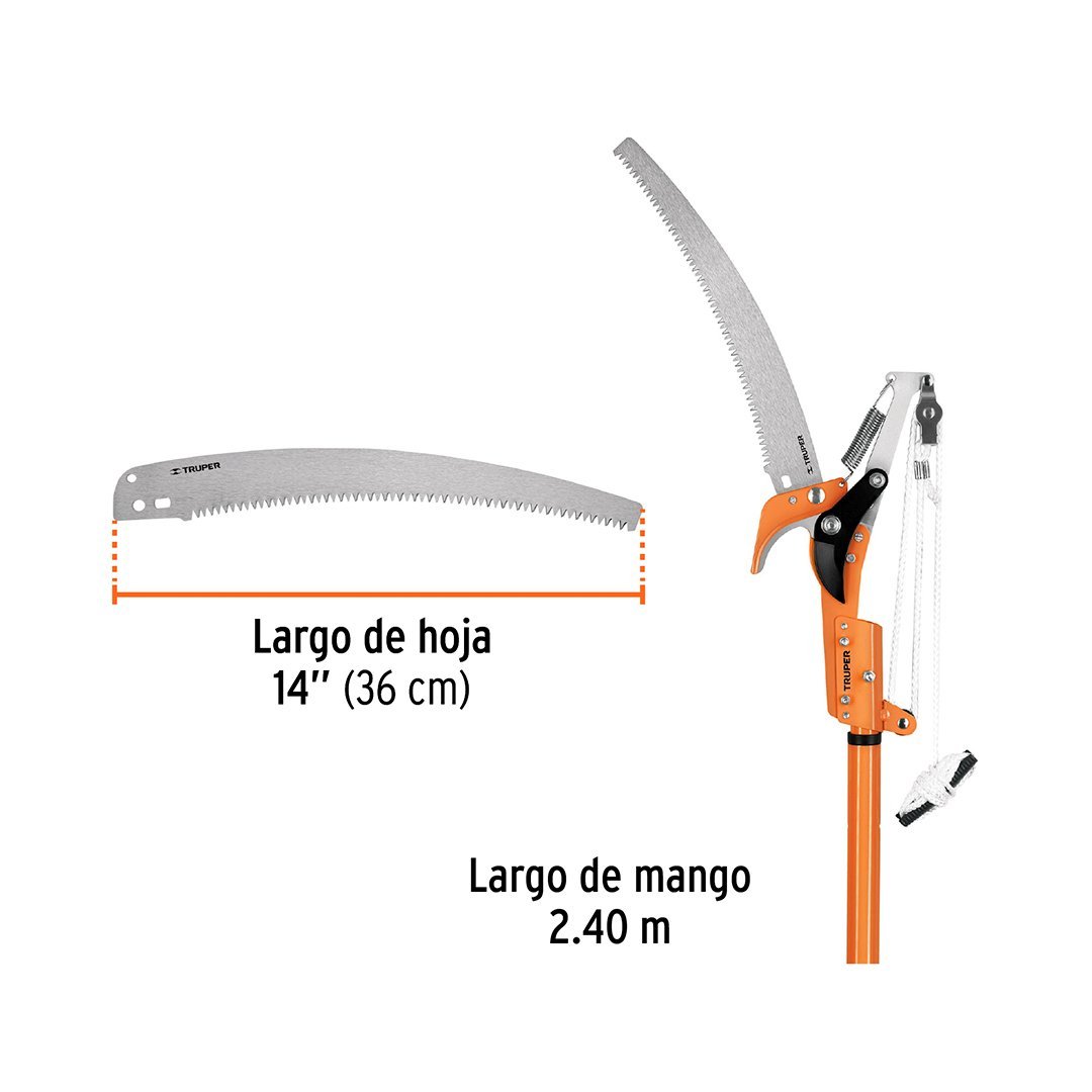 Cortador de ramas altas mango telescópico 2.4 m aluminio TRUPER