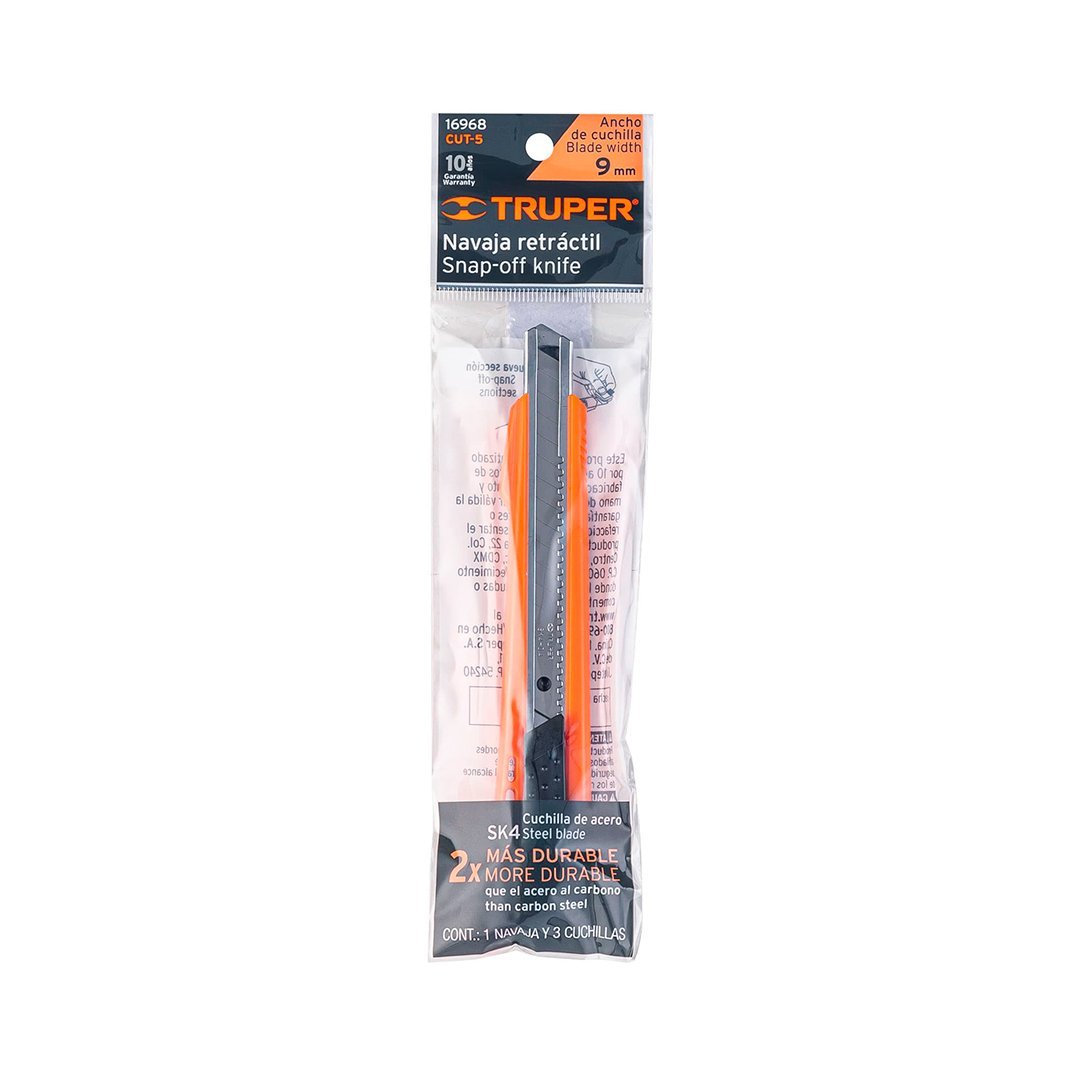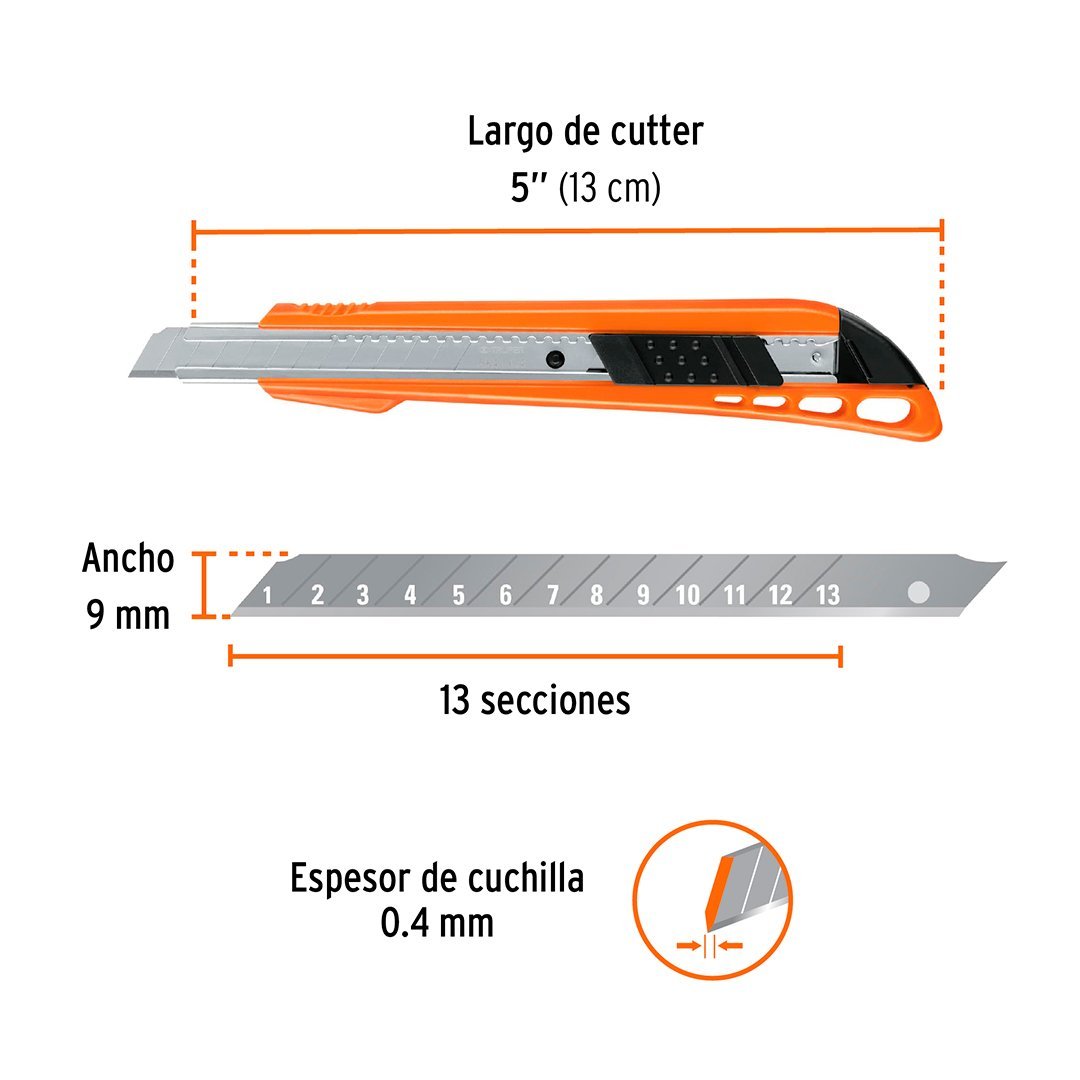 Cutter 9 mm plástico con alma metálica TRUPER cantidad