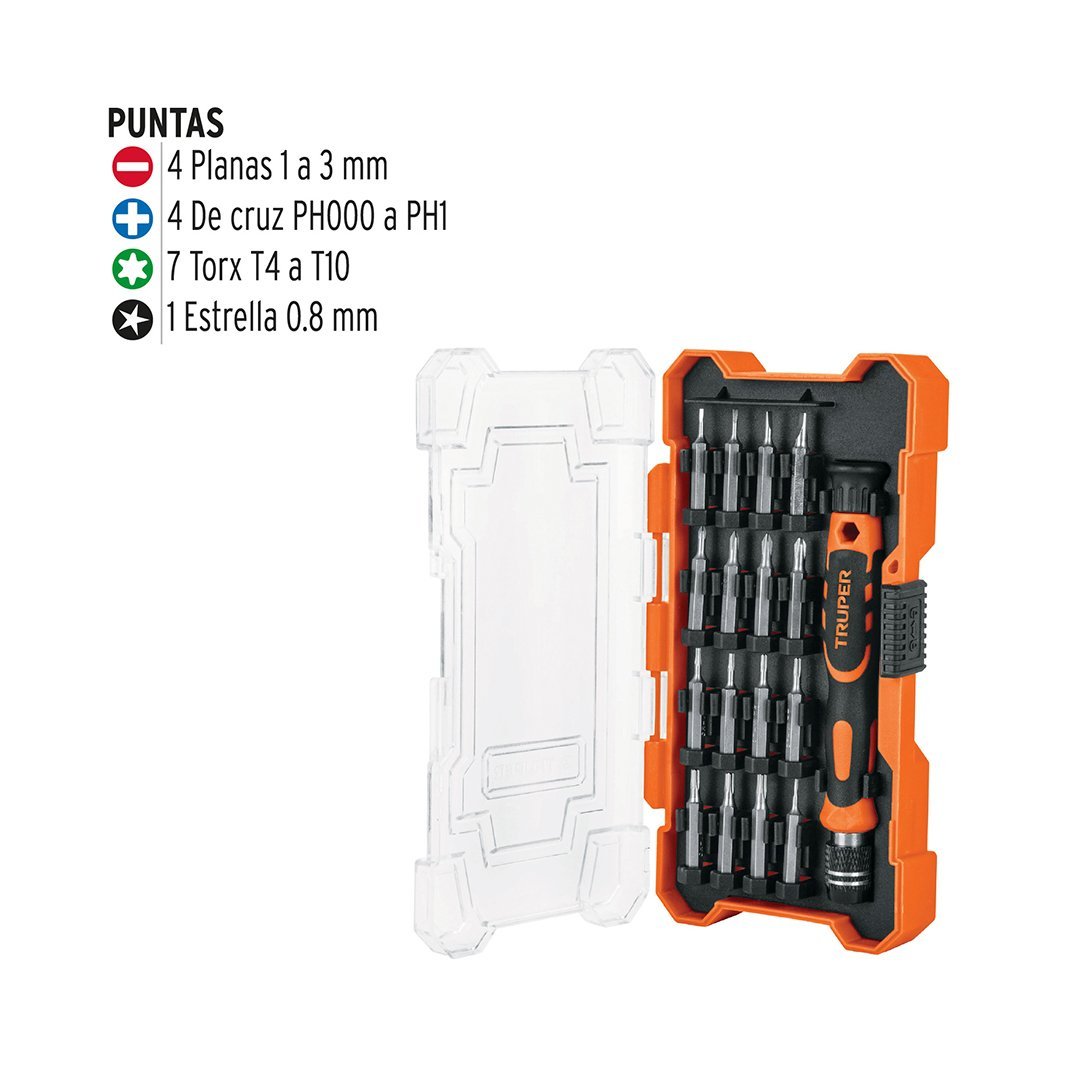 Desarmador de precisión con 16 puntas TRUPER cantidad