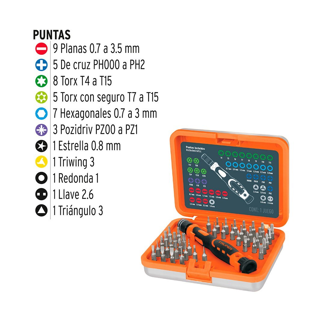 Desarmador de precisión con 42 puntas TRUPER cantidad