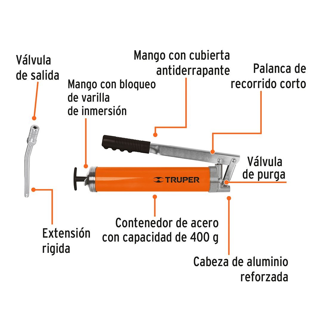 Engrasadora 14 oz, 6000 psi con grip antiderrapante TRUPER