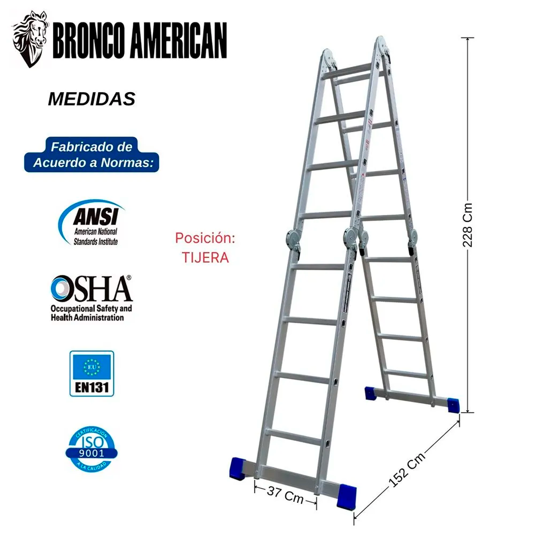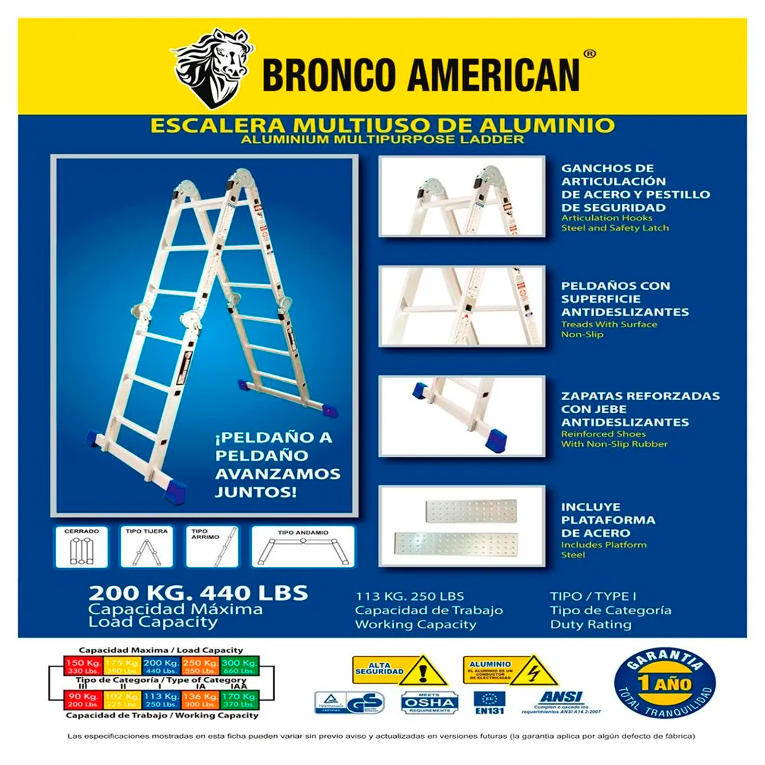 | Instrucciones uso | Apoye la escalera sobre sus zapatas en un piso firme y nivelado. Abra totalmente la escalera (Ver etiqueta adherida en el larguero de la escalera). No subir al último peldaño de la escalera. |