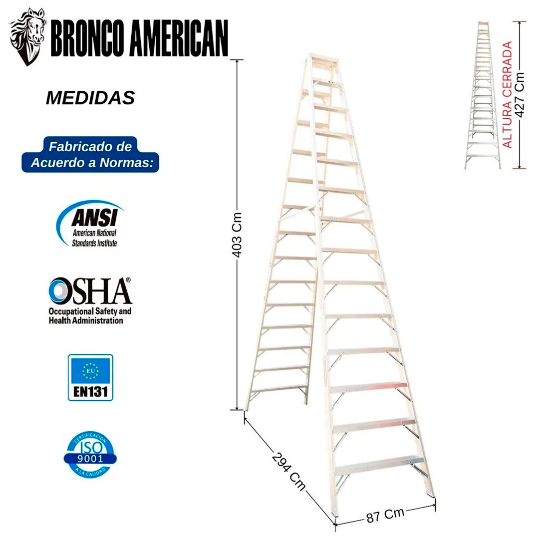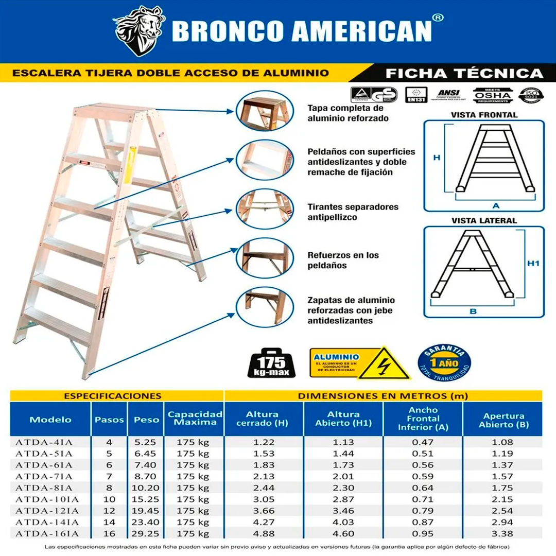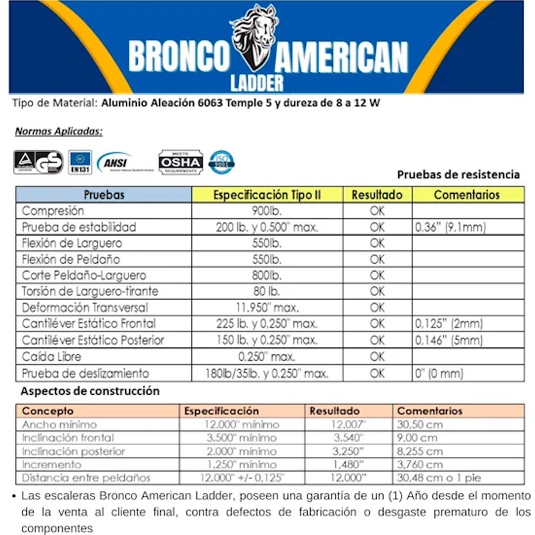 Asegure los tirantes antes de subir / Ponga las cuatros zapatas sobre una superficie plana / Mantenga los peldaños limpios / Mantenga el cuerpo centrado entre los rieles laterales |