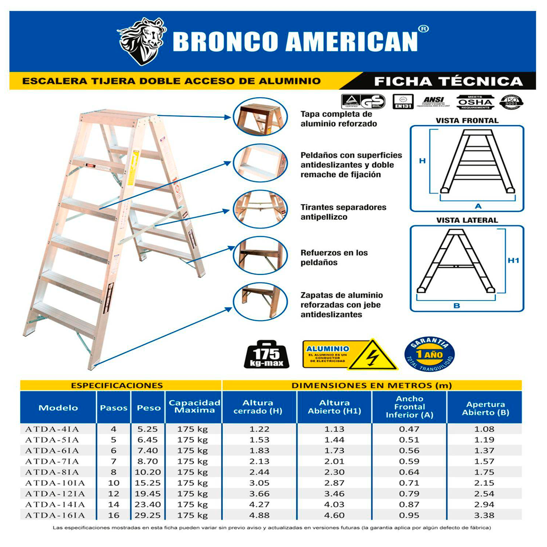 Escalera Aluminio Tijera Doble Ascenso de 7 Pasos-Bronco American Ladder