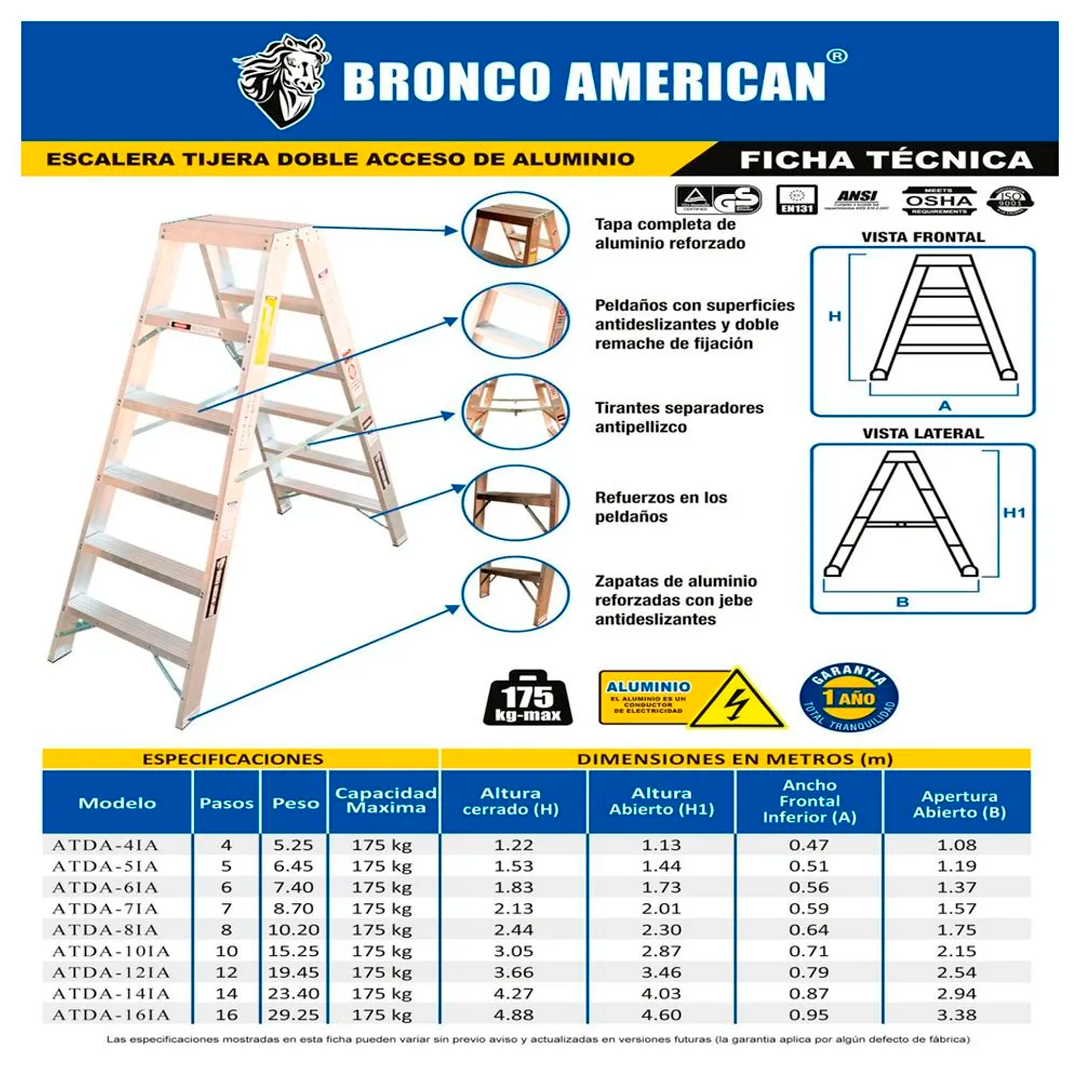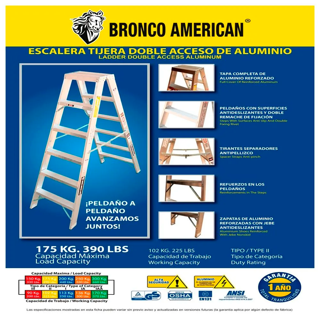 Asegure los tirantes antes de subir / Ponga las cuatros zapatas sobre una superficie plana / Mantenga los peldaños limpios / Mantenga el cuerpo centrado entre los rieles laterales |