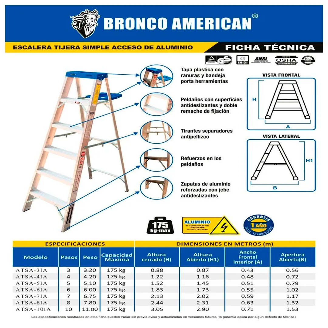 Escalera Aluminio Tijera Simple Ascenso de 4 Pasos-Bronco American Ladder