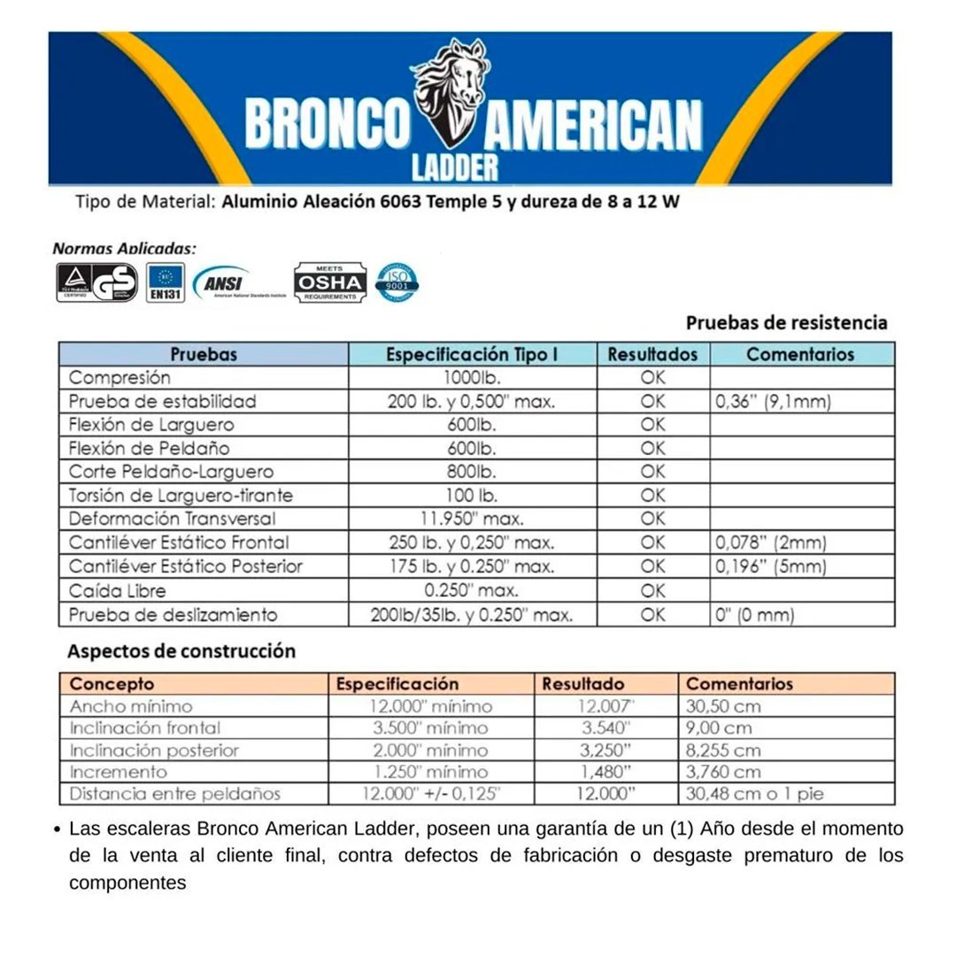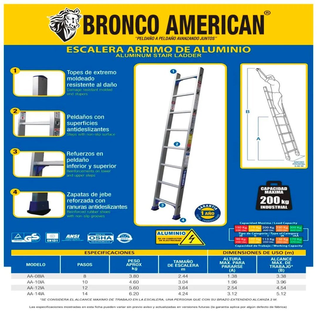 Escalera Arrimo de Aluminio de 14 Pasos BRONCO AMERICAN