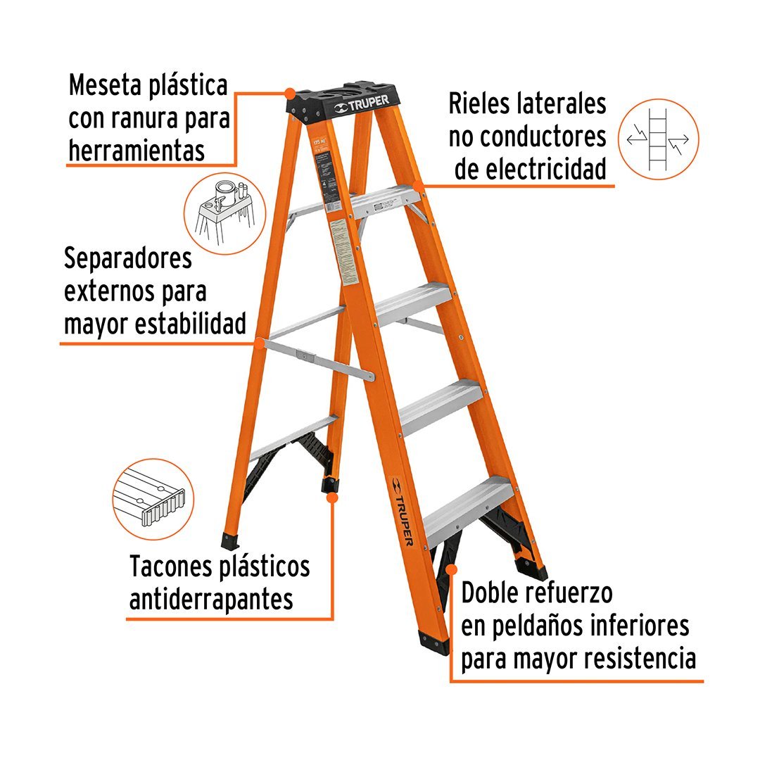 Escalera de tijera tipo ll, fibra de vidrio 4 peldaños TRUPER