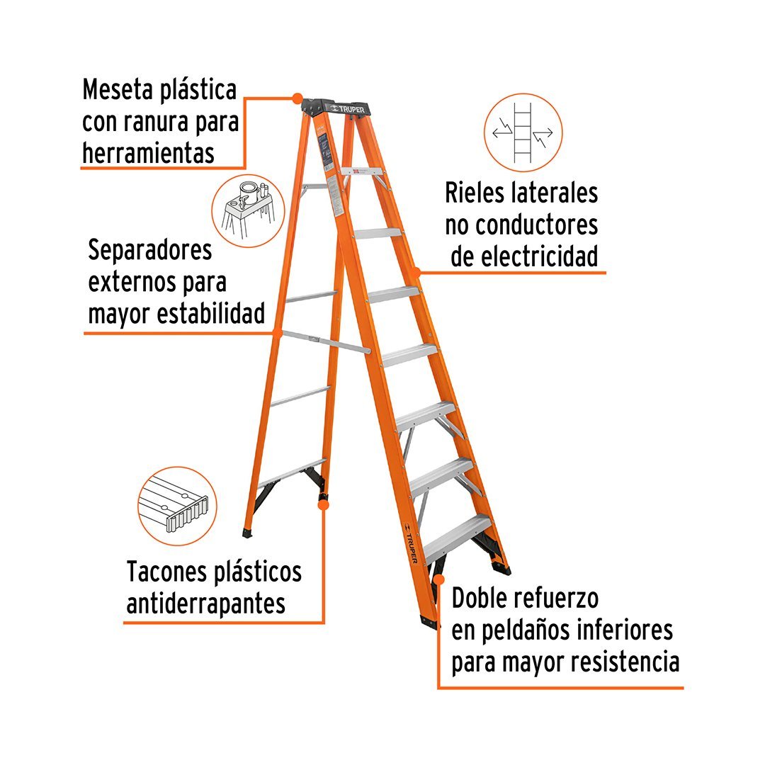 Escalera de tijera tipo ll, fibra de vidrio 7 escalones TRUPER