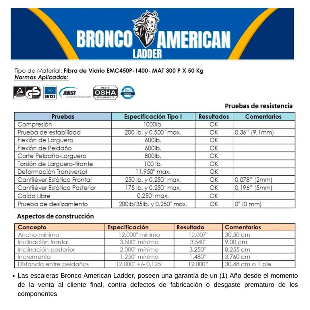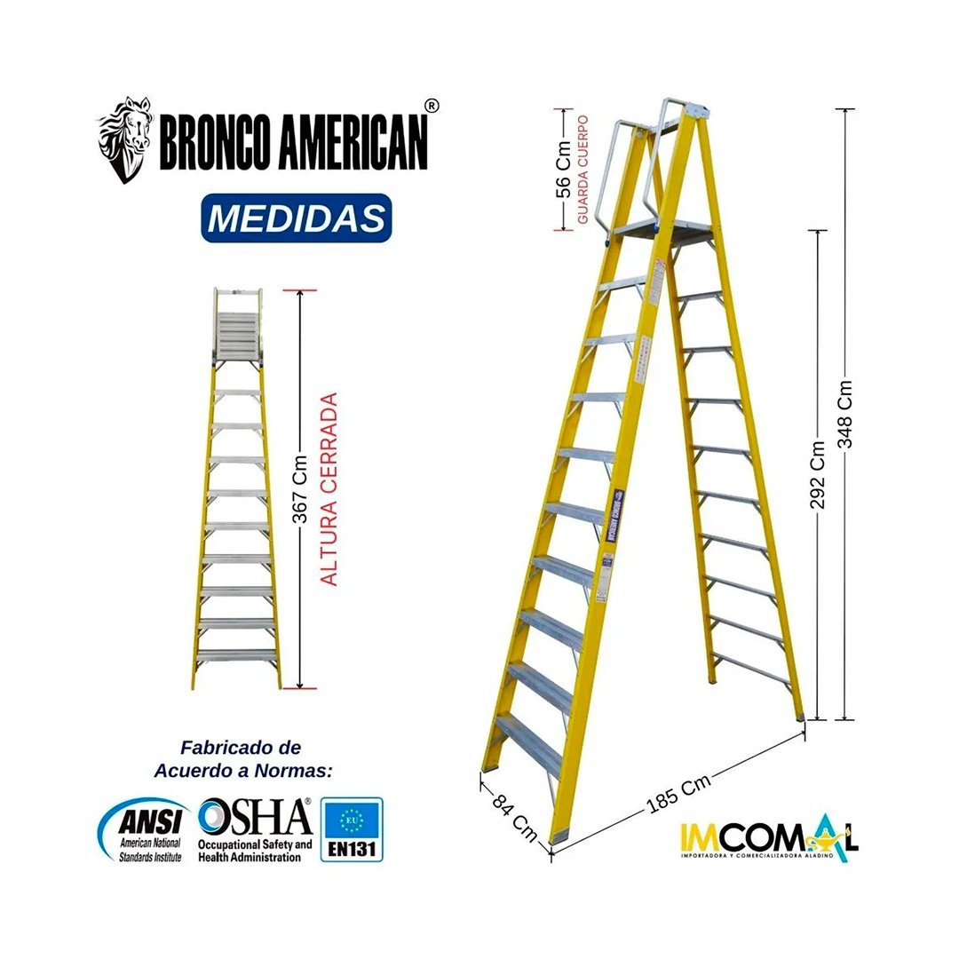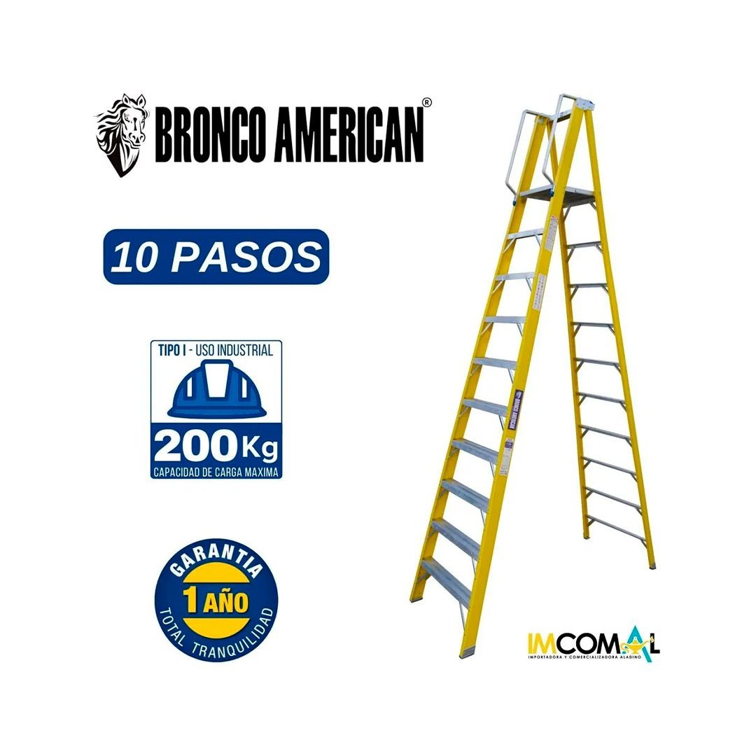 Escalera Fibra de Vidrio Tijera con Plataforma de 10 Pasos Bronco American Ladder cantidad