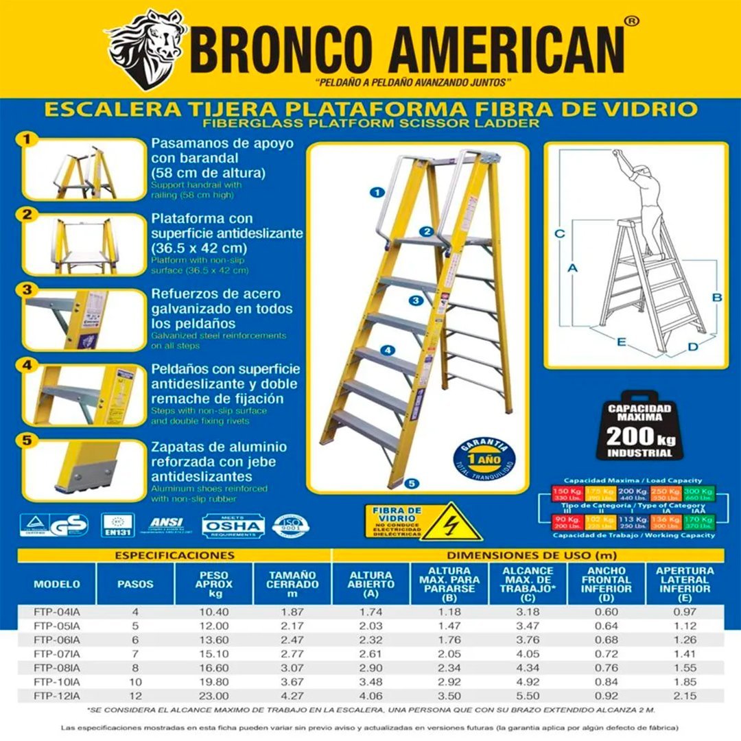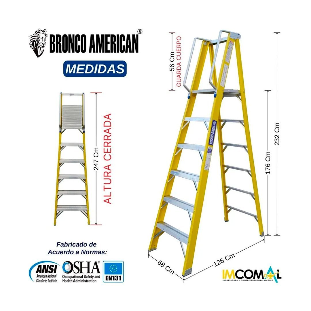 Escalera Fibra de Vidrio Tijera con Plataforma de 6 Pasos Bronco American Ladder cantidad