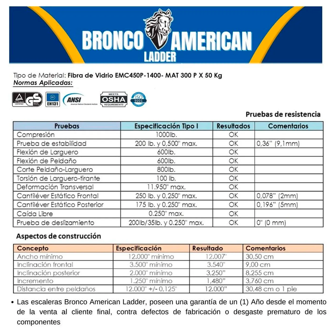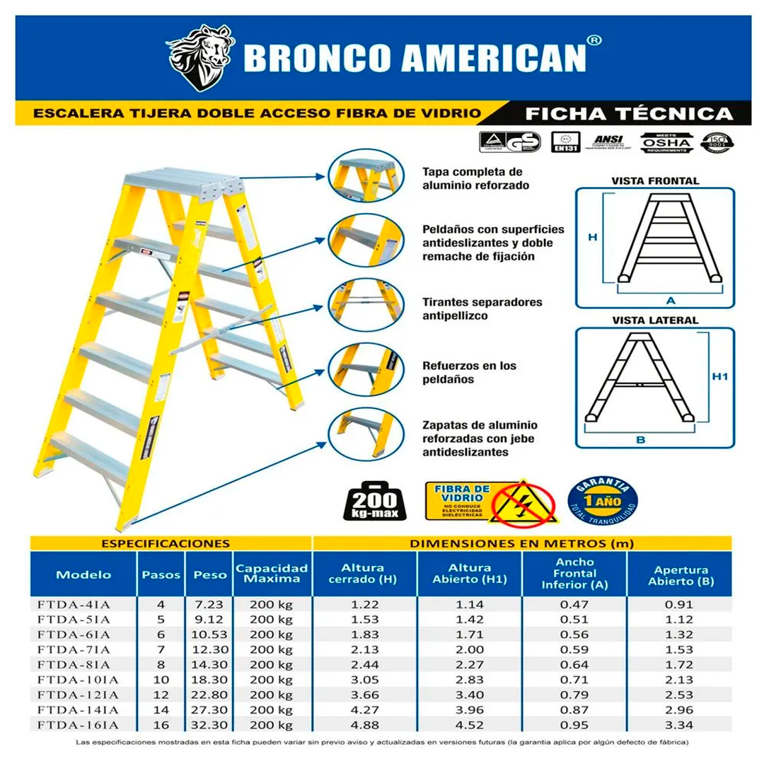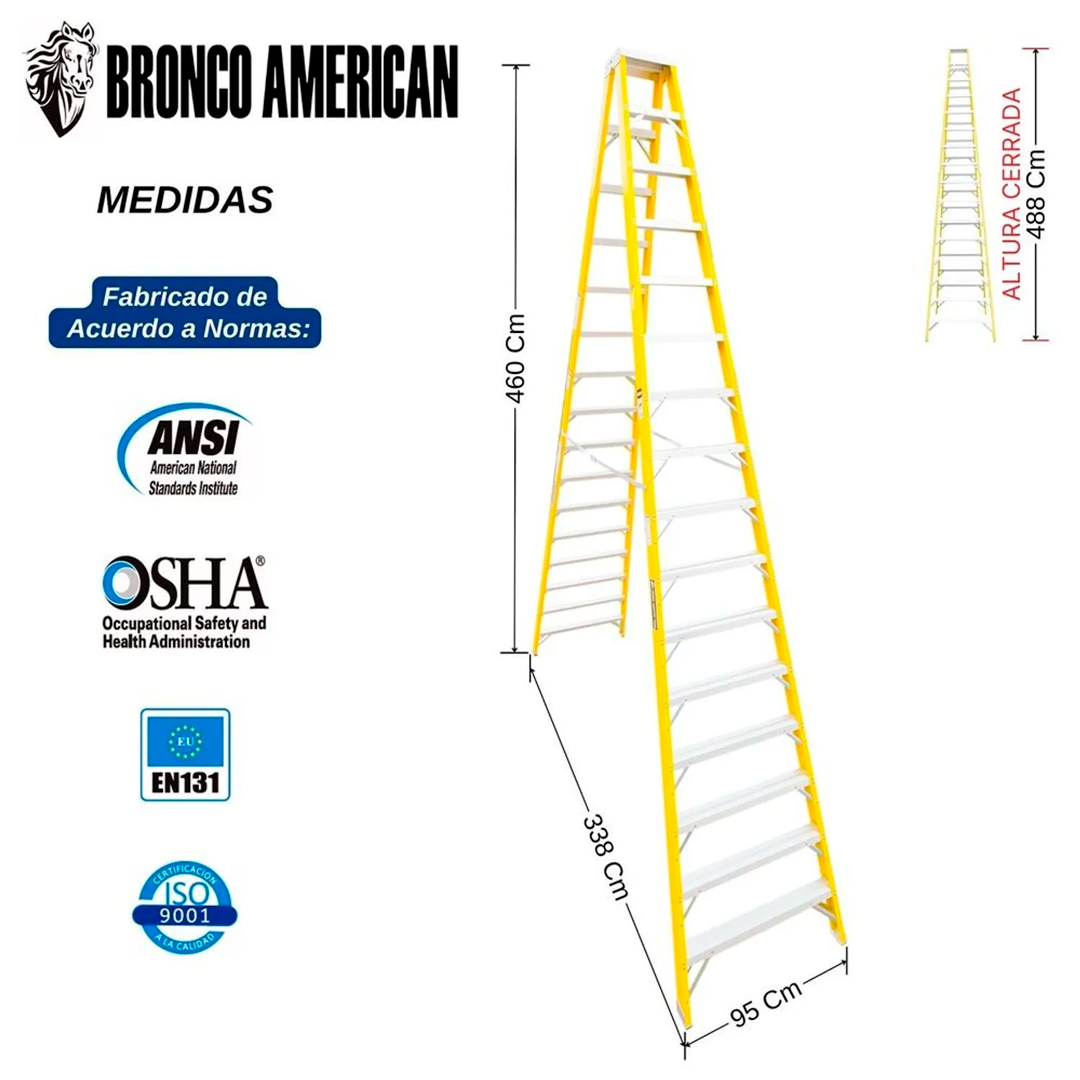 Escalera Fibra de Vidrio Tijera Doble Ascenso de 16 Pasos Bronco American Ladder