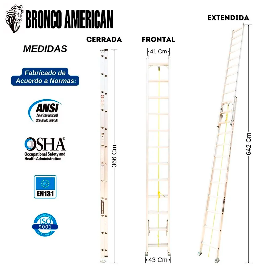 Escalera telescópica de Aluminio 24 pasos Bronco American Ladder