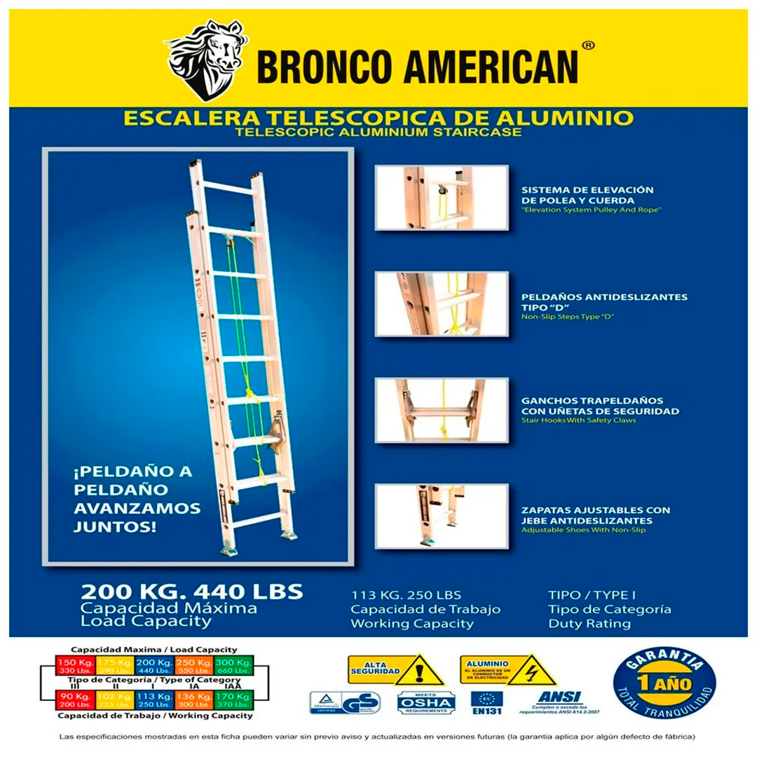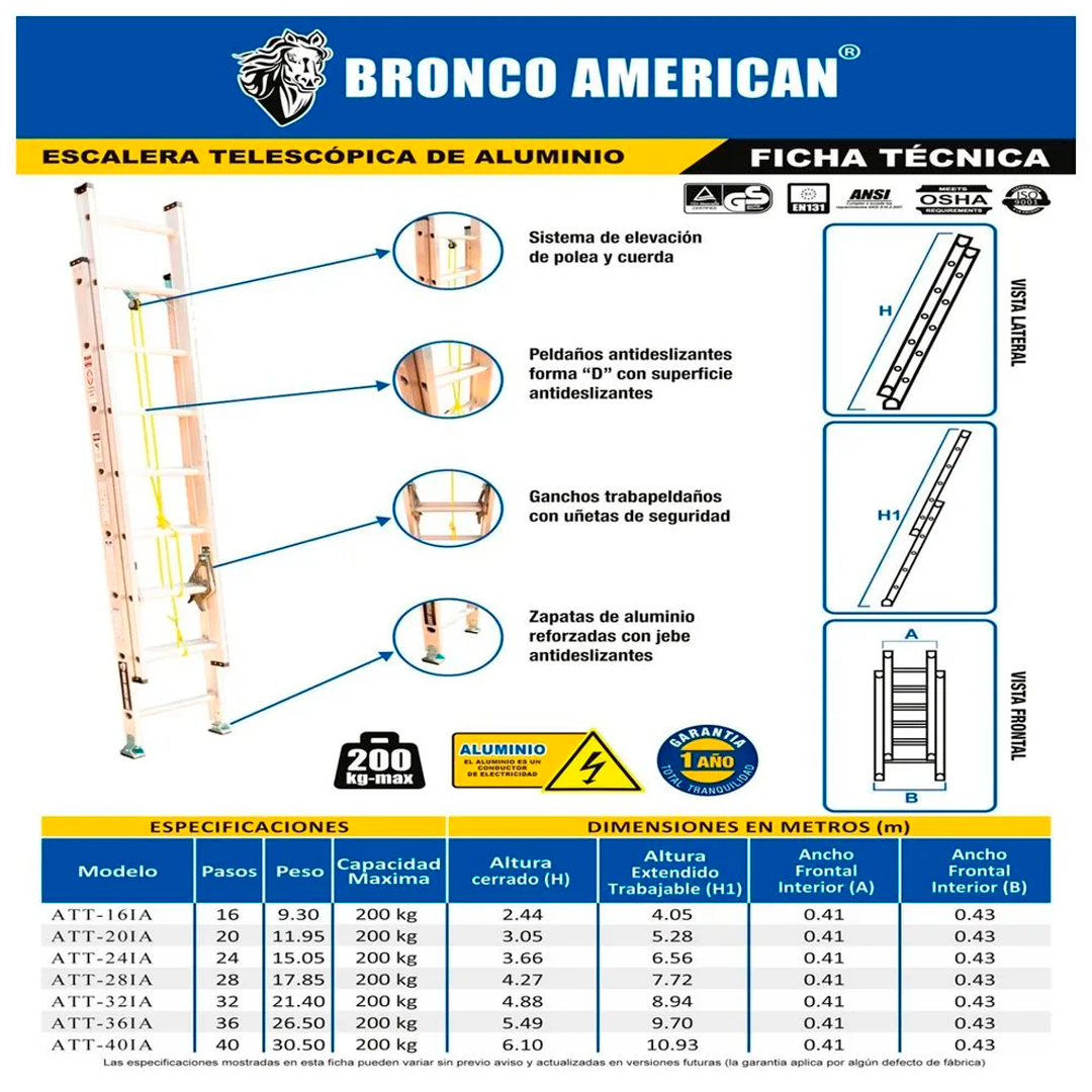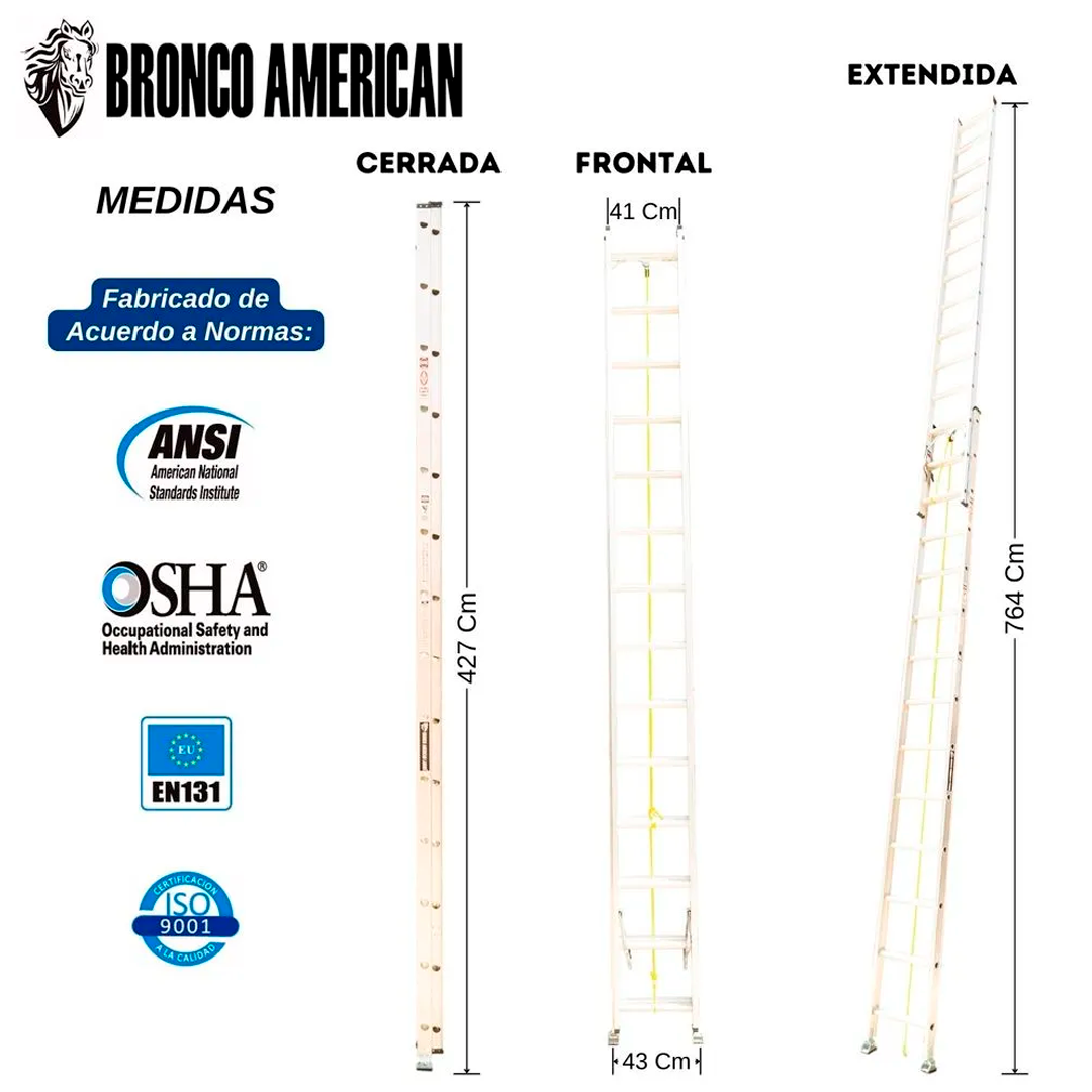 Escalera telescópica de Aluminio 28 pasos Bronco American Ladder