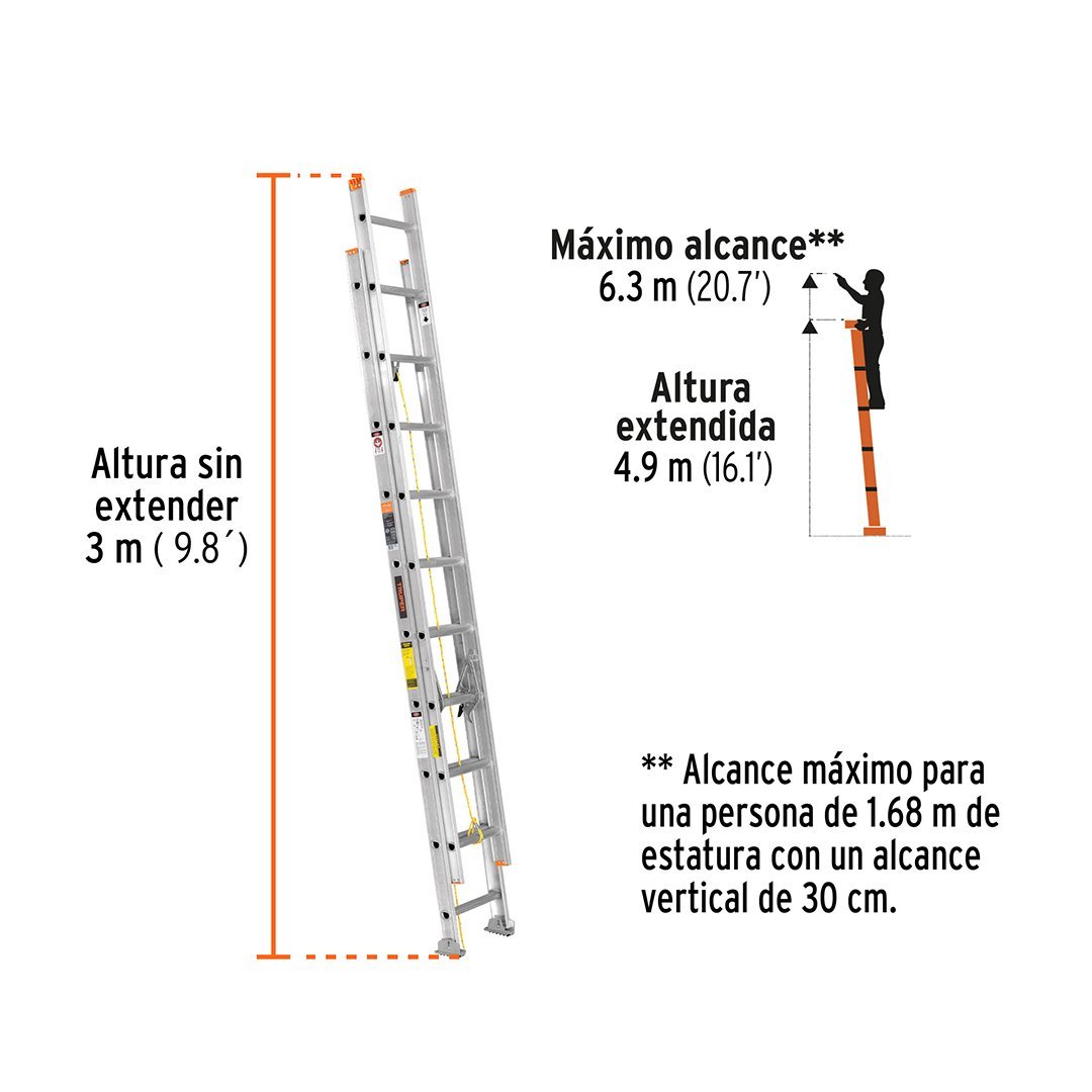 Altura extendida 4.9 m (16.1′)