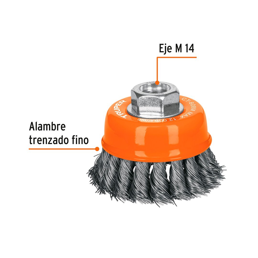 Escobilla tipo copa 3″ alambre trenzado fino TRUPER
