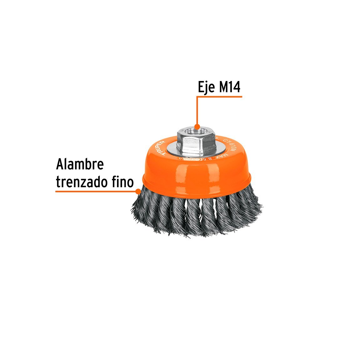 Escobilla tipo copa 4″ alambre trenzado fino TRUPER