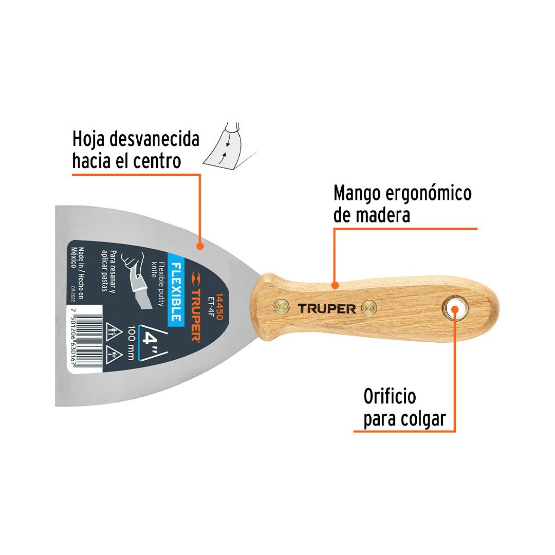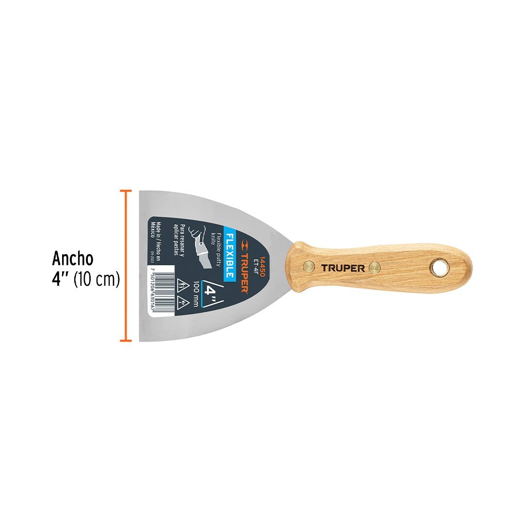 Espátula flexible 4" con mango de madera TRUPER cantidad