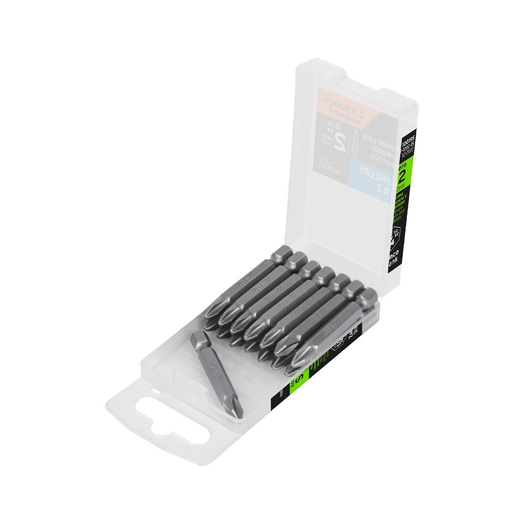 Estuche con 15 puntas de cruz PH2 largo 2″ TRUPER