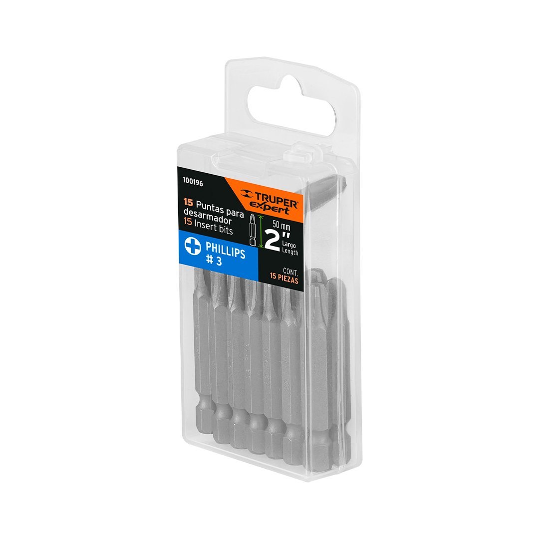 Estuche con 15 puntas de cruz PH3 largo 2" TRUPER cantidad