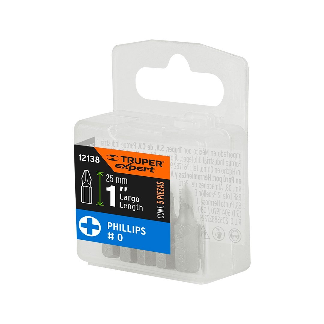 Estuche con 5 puntas de cruz PH0 largo 1″ TRUPER