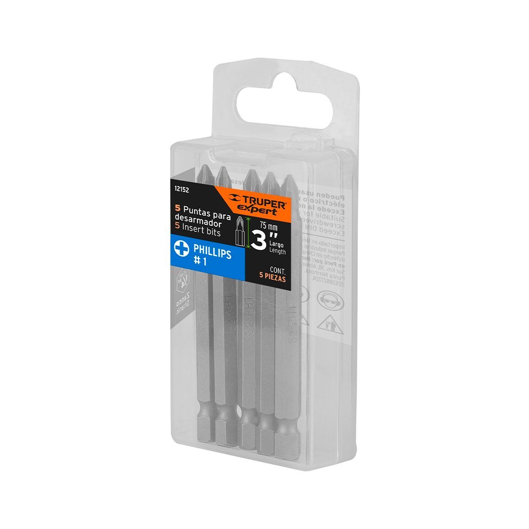 Estuche con 5 puntas de cruz PH1 largo 3" TRUPER cantidad