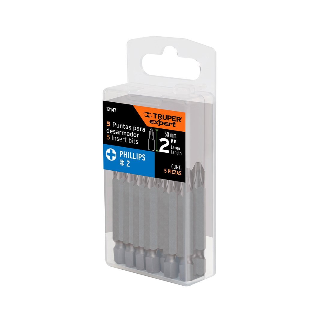 Estuche con 5 puntas de cruz PH2 largo 2" TRUPER cantidad