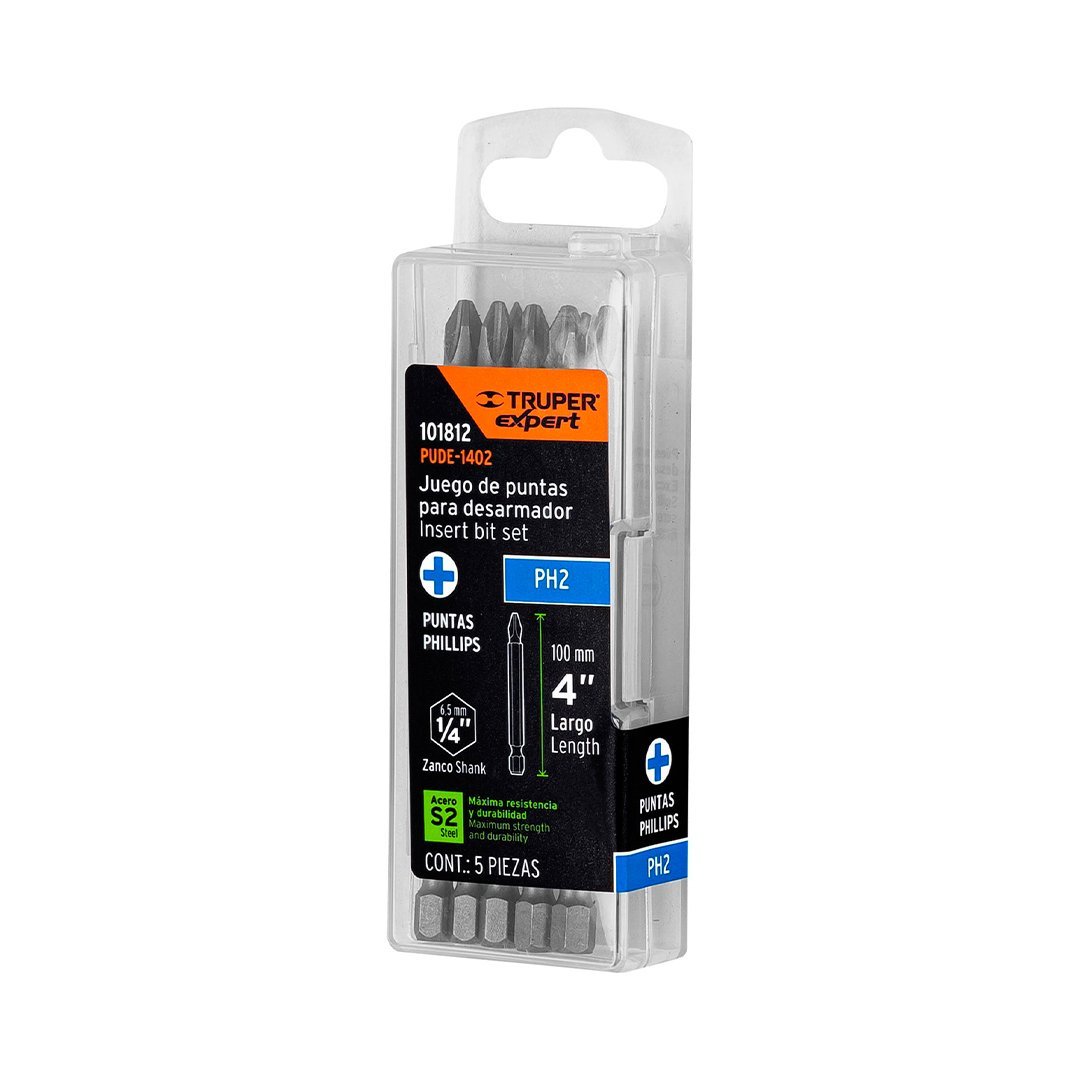 Estuche con 5 puntas de cruz PH2 largo 4" TRUPER cantidad